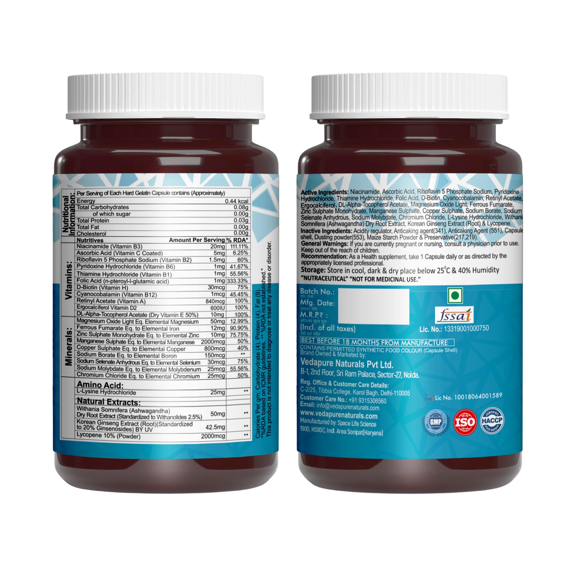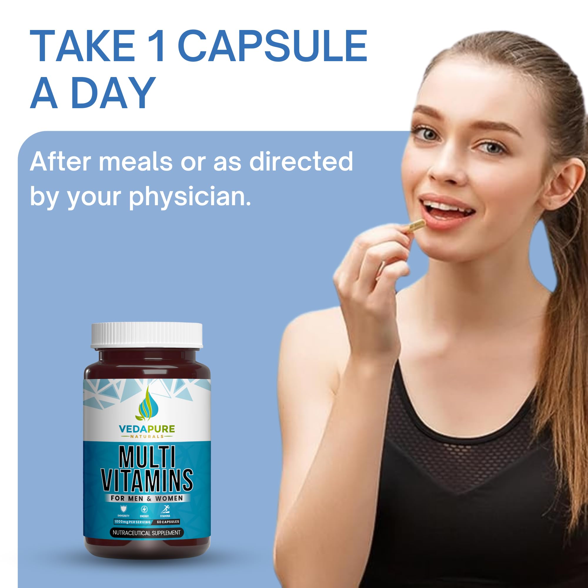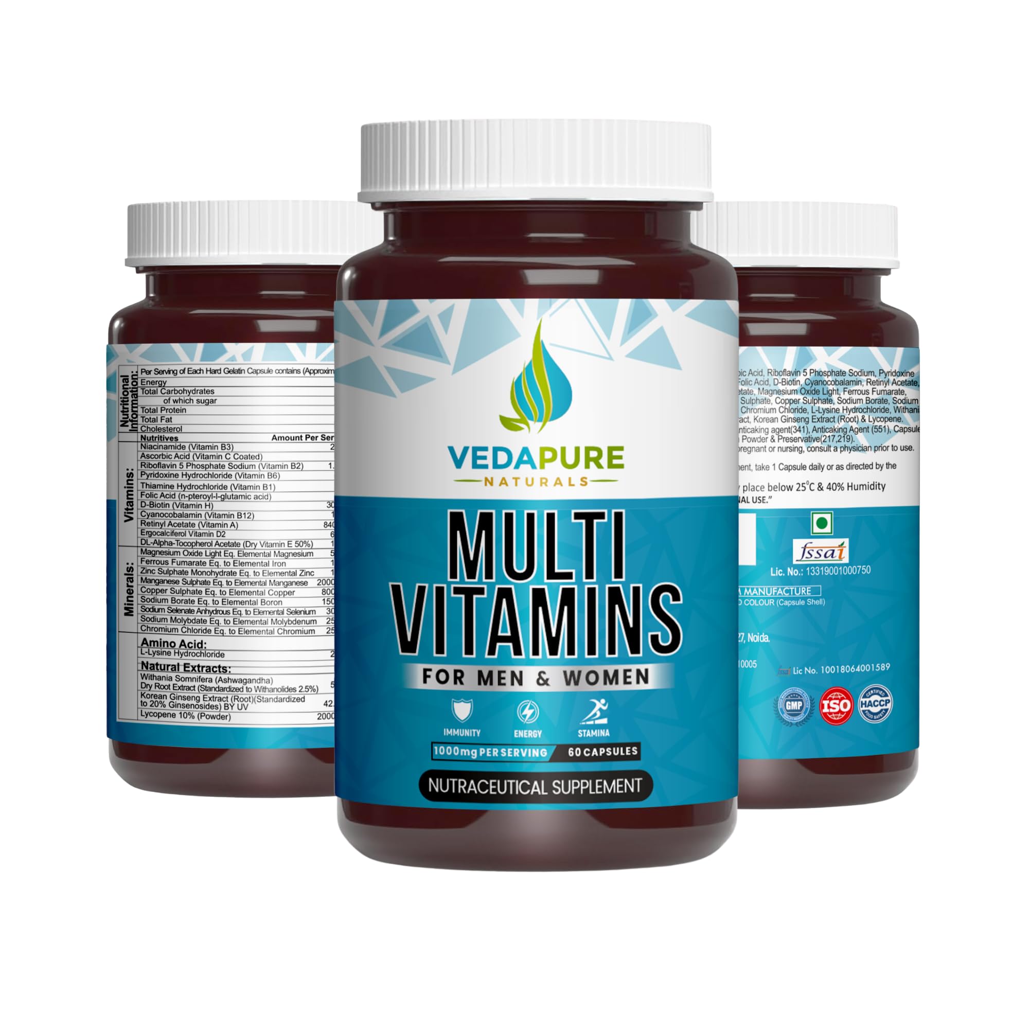Vedapure Naturals Daily Multivitamin for Men & Women | Multivitamin with Zinc Vitamin C Vitamin D Calcium Iron & K2 | Supports Stamina Immunity Bone Strength and Overall Health | - 60 Capsules