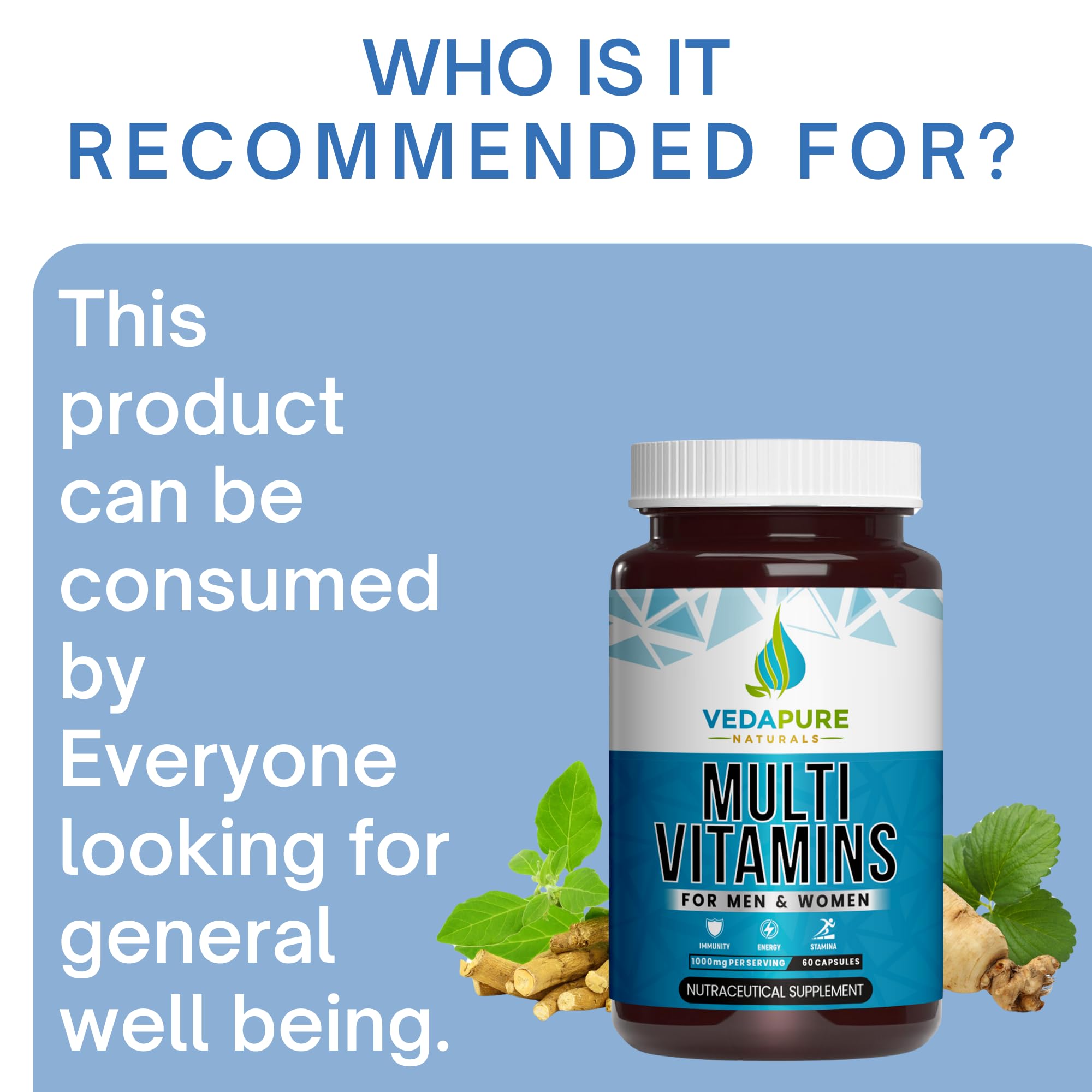 • Immune System Support: Fortified with Vitamin C Vitamin D and Zinc Vedapure Naturals Daily Multivitamin strengthens the immune system. These essential nutrients work together to enhance the body's natural defenses helping to ward off common illnesses and