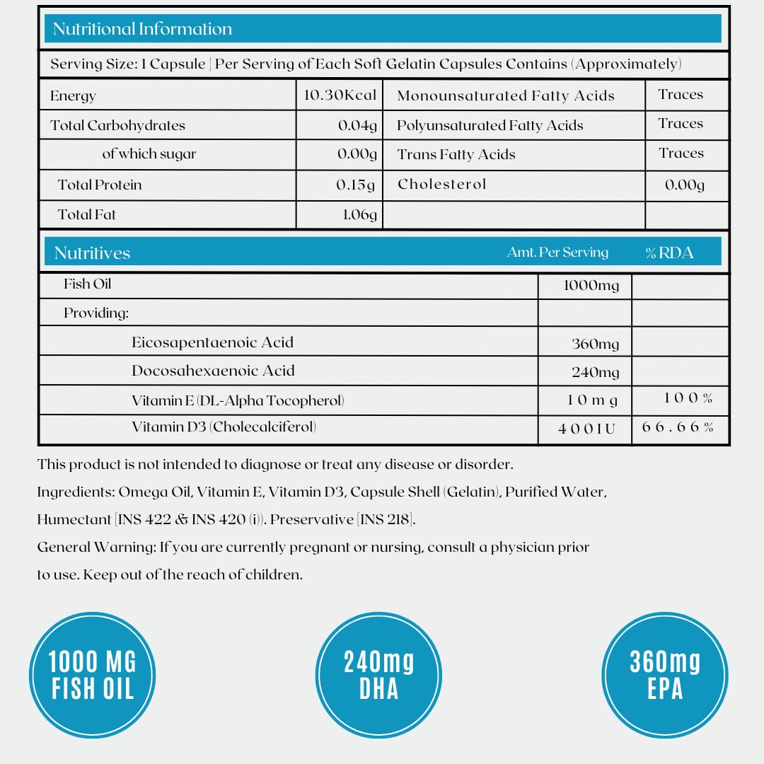 • Omega 3 Supplement for Overall Wellness With 60 capsules per bottle our Omega 3 supplement offers long-lasting benefits supporting cognitive function reducing inflammation and improving skin health. Ideal for both men and women seeking comprehensive welln