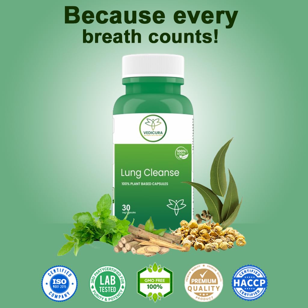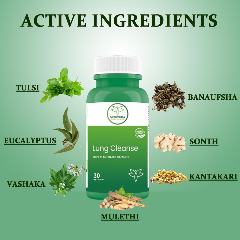 Lung Cleanse offers a breath of fresh air in every capsule blending traditional herbs like Vashaka Banaufsha Mulethi Tulsi Kantakari Sonth and Eucalyptus to support respiratory wellness. Tailored for those exposed to smoke or urban pollution this formula seeks to assist in maintaining respiratory clarity and comfort. Whether looking to support your lung health due to environmental factors or seeking a natural approach to respiratory care Lung Cleanse is your ally in promoting a sense of breathing ease and overall pulmonary well being.