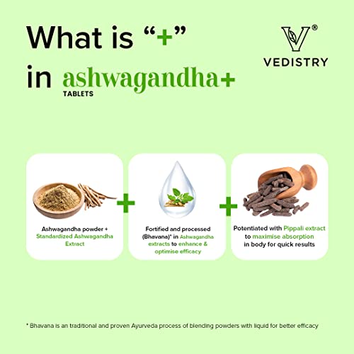 • Vedistry Ashwagandha+ is made with 300 mg of Standardized Ashwagandha Extracts and 250 mg of Best Quality Ashwagandha powder.
