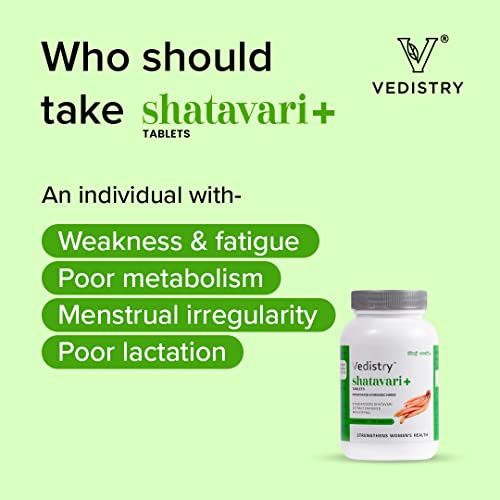 • Vedistry's Shatavari+ tablets boost energy and strength balance female hormones and even improve lactation. With its powerful antioxidant and anti-inflammatory properties.