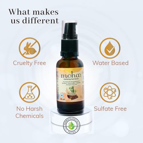 moha Vedistry Moha: Hyaluronic Acid Hydrating Face Serum For Moisturized, 2% Hyaluronic Acid, Hydrated & Younger Looking Skin Light Weight, Non-Greasy, Quick Absorbing Suitable For All Skin Types