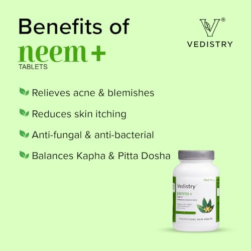 Vedistry Neem+ Tablets | Promotes Skin Health | Control Acne, dark spot & Blemishes | Natural Blood Purifier (60 Tablets in one bottle)