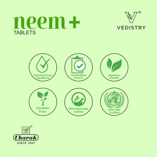 • Vedistry Neem + tablets is Potentiated with Pippali extracts containing Piperine to improve absorption for quick results.