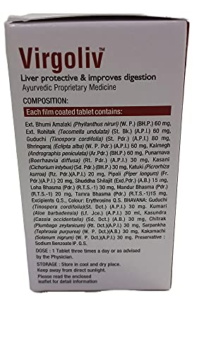Virgoliv Tablet is the combination of hepato-protective hepato-stimulant appetiser digestive and blood purifier herbs. Virgoliv Tablet can be useful for all types of acute & chronic liver-spleen related disorders.