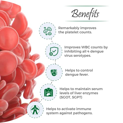 It increases platelet counts which in turn improves the overall health and helps maintain enzyme levels and boosts immunity.