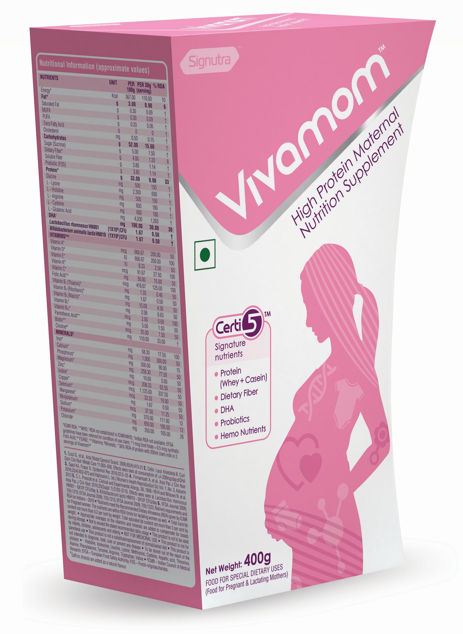 VivamomTM is a scientifically designed high protein maternal nutrition supplement with 34 nutrients to meet the increased nutrient needs for pregnant women.