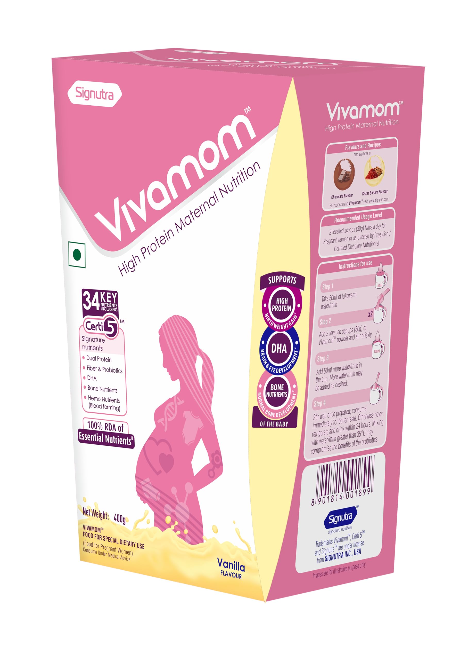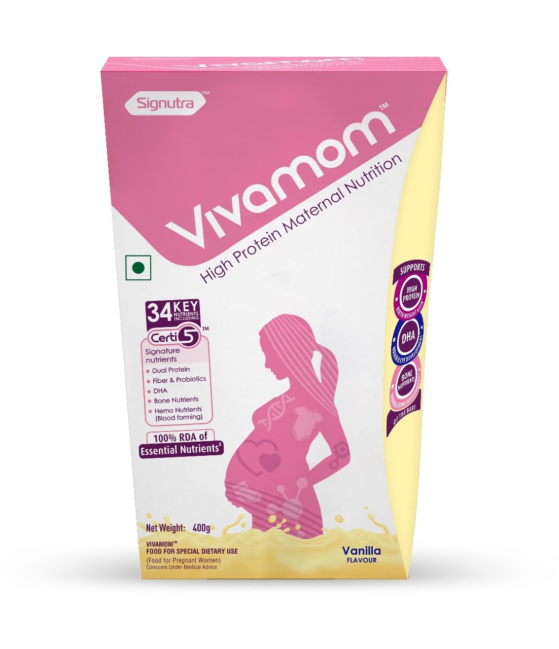 VivamomTM is a scientifically designed high protein maternal nutrition supplement with 34 nutrients to meet the increased nutrient needs for pregnant women.