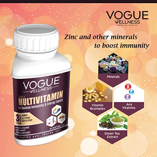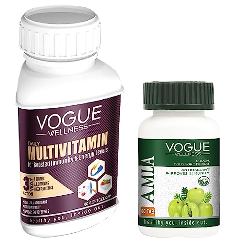 VOGUE WELLNESS PRESENT DAILY MULTIVITAMIN FOR ED & ENERGY LEVELS 3 WAY ACTION - B COMPLEX A C E VITAMINS & GREEN TEA EXTRACT AND POWERFUL ANTIOXIDANT S & IMPROVES ENERGY LEVELS Multivitamin Caps. contain ingredients like Lycopene Green Tea Extract Mecobalamin and many more nutrients that help in improving energy and endurance. These Caps. help in improving bone health and getting better recovery. Vogue Wellness Amla Tab. Is An Excellent Source Of Vitamin C And Superfood For Their Health Benefits. It Helps Your And Viral And Bacterial Ailments Including And . It'S Helpful In Wide Variety Of Health Problems Improving Healthy Functioning Of The Eyes Brain Hair Problems Lungs Managing High Levels Normalising s Controlling Levels Helps Prevent Aging Stimulating Hair Growth Purify Brighten The Skin Improve Eyesight And Relieve Acidity.