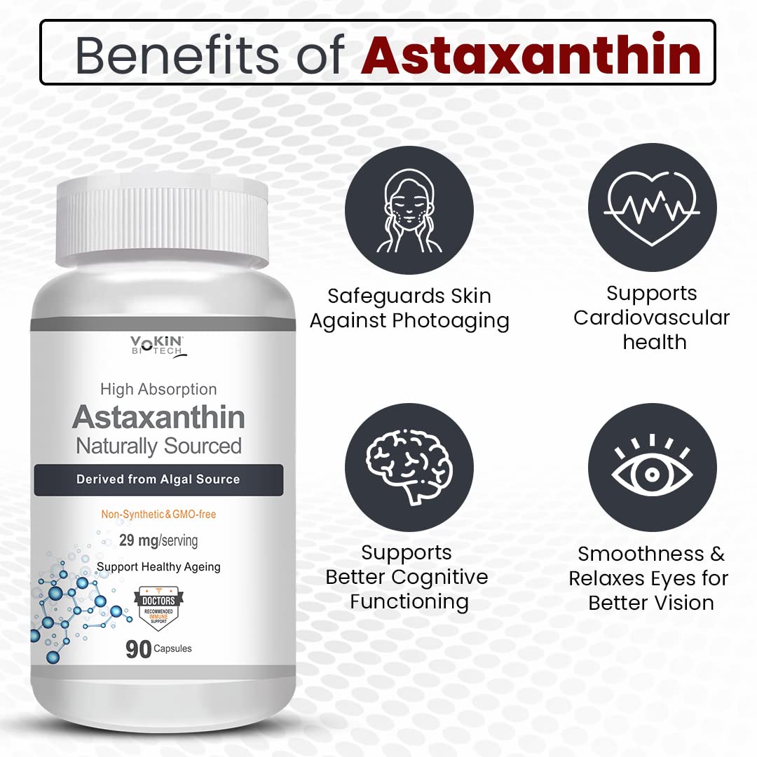 Vokin Biotech Astaxanthin 29mg - Naturally Sourced from Algae - Non-Synthetic - Best or Healthy Ageing - 90 Capsules