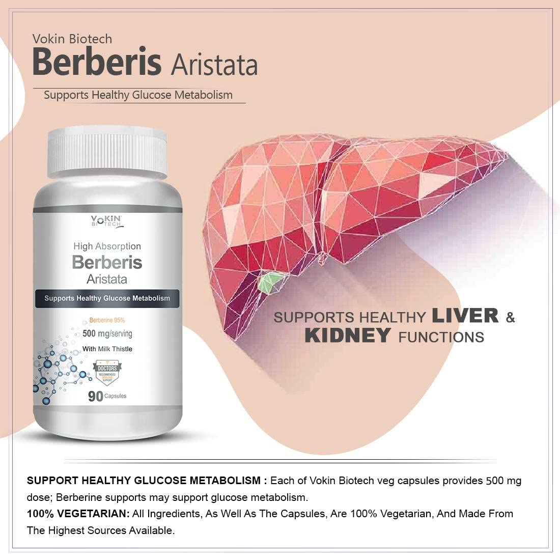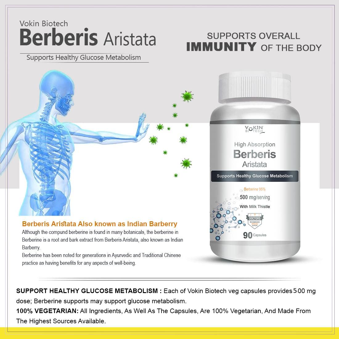 Support healthy glucose metabolism : Each of Vokin Biotech veg capsules provides 300 mg dose; Berberine supports may support glucose metabolism.