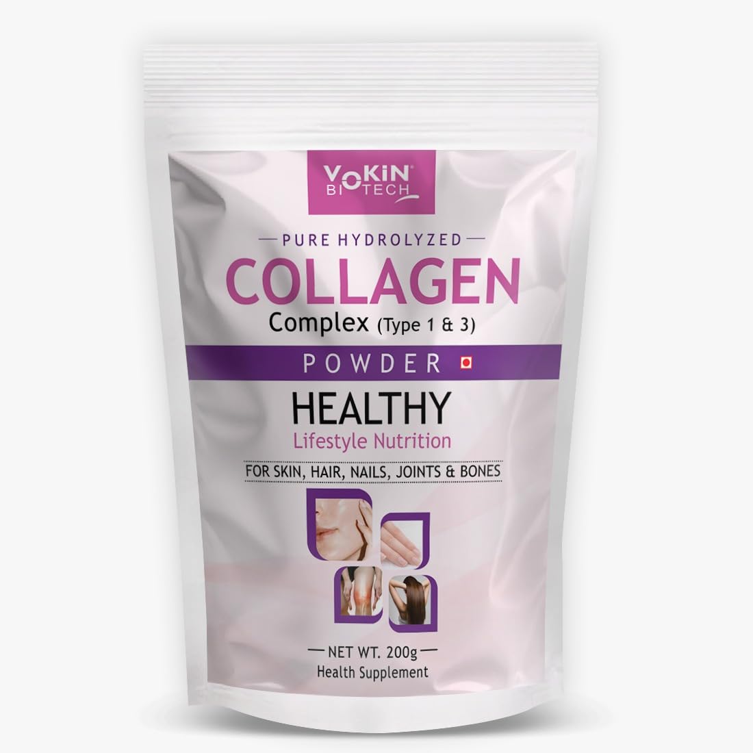 Vokin Biotech Collagen Powder Supplement with Peptides Hair Nails Joints and Bones (200 g)