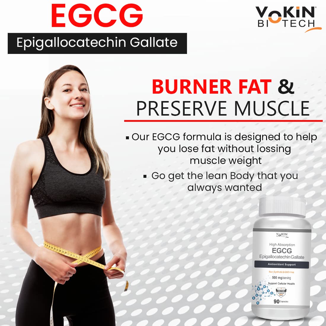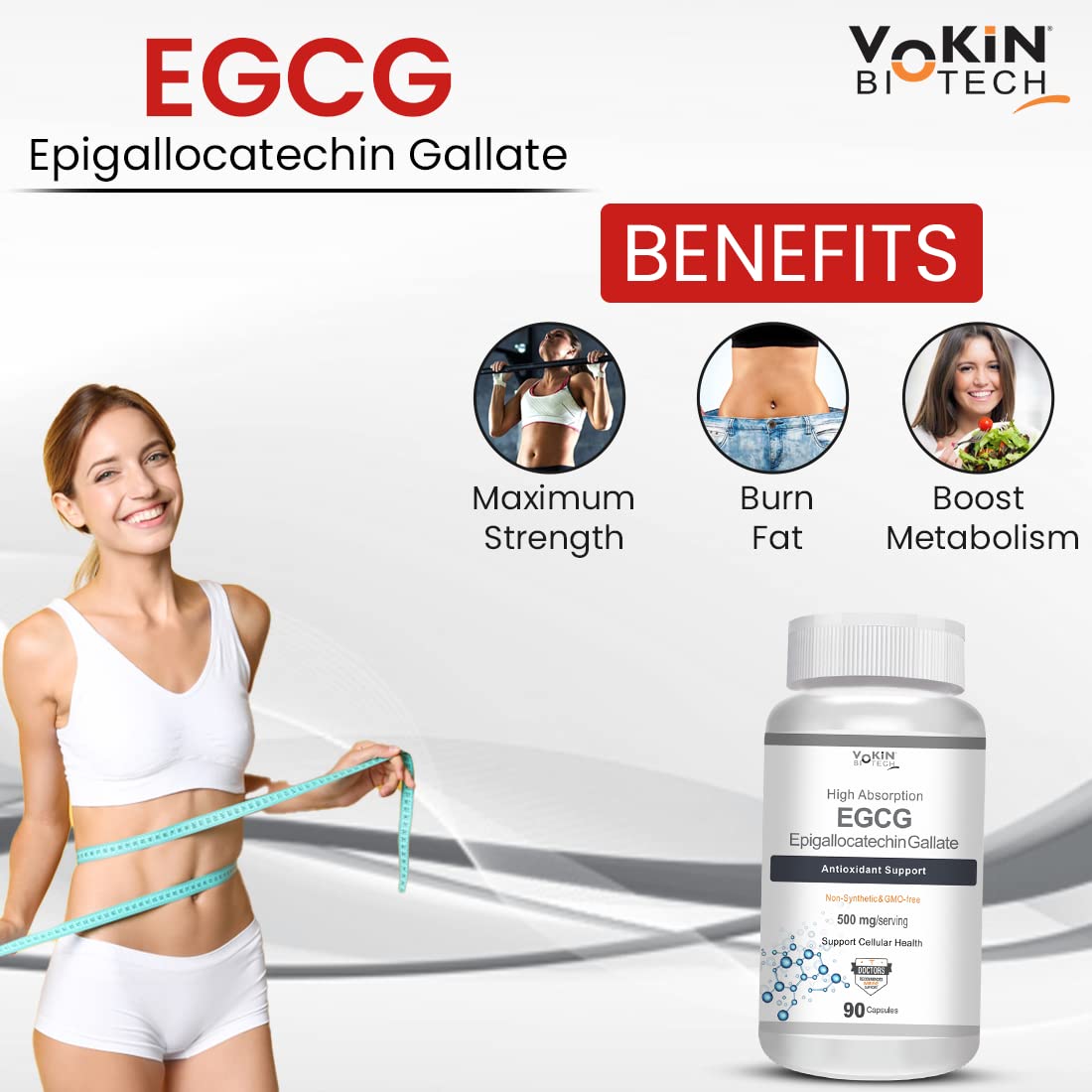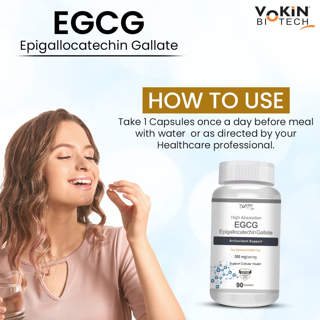 Vokin Biotech EGCG from Green Tea Leaf Extract 500mg EGCG - Antioxidant Support 90 Capsules