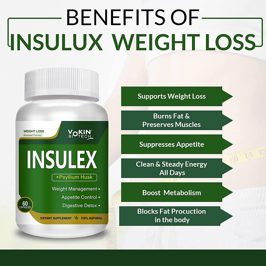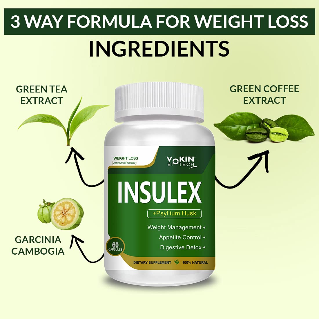 Vokin Biotech Insulex Weight Management | Appetite Control | Digestive Detox (60 Capsules)