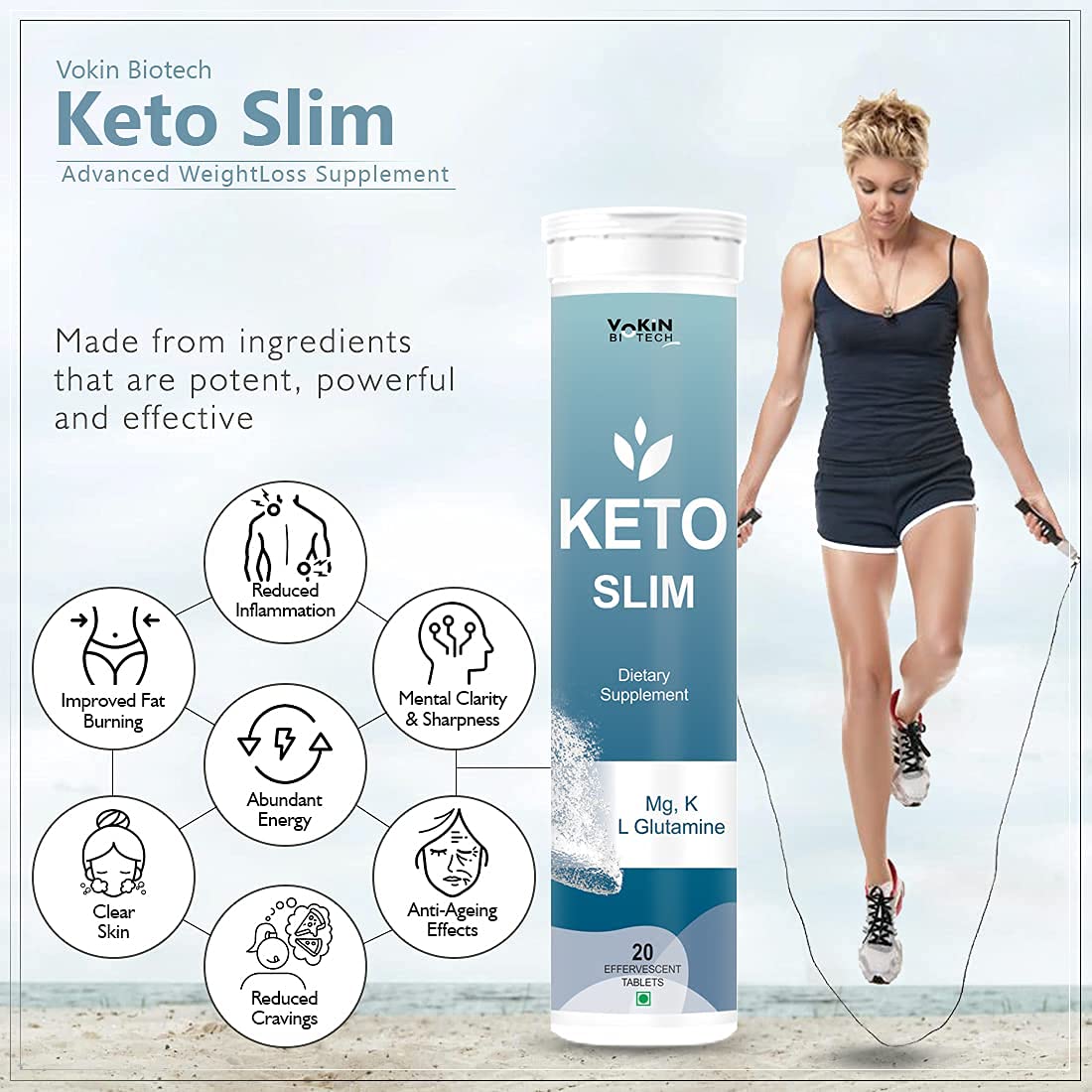 Vokin Biotech Keto Slim Tablets For Weight Loss Dietary Supplement Effervescent Water Soluble (20 Tablets)