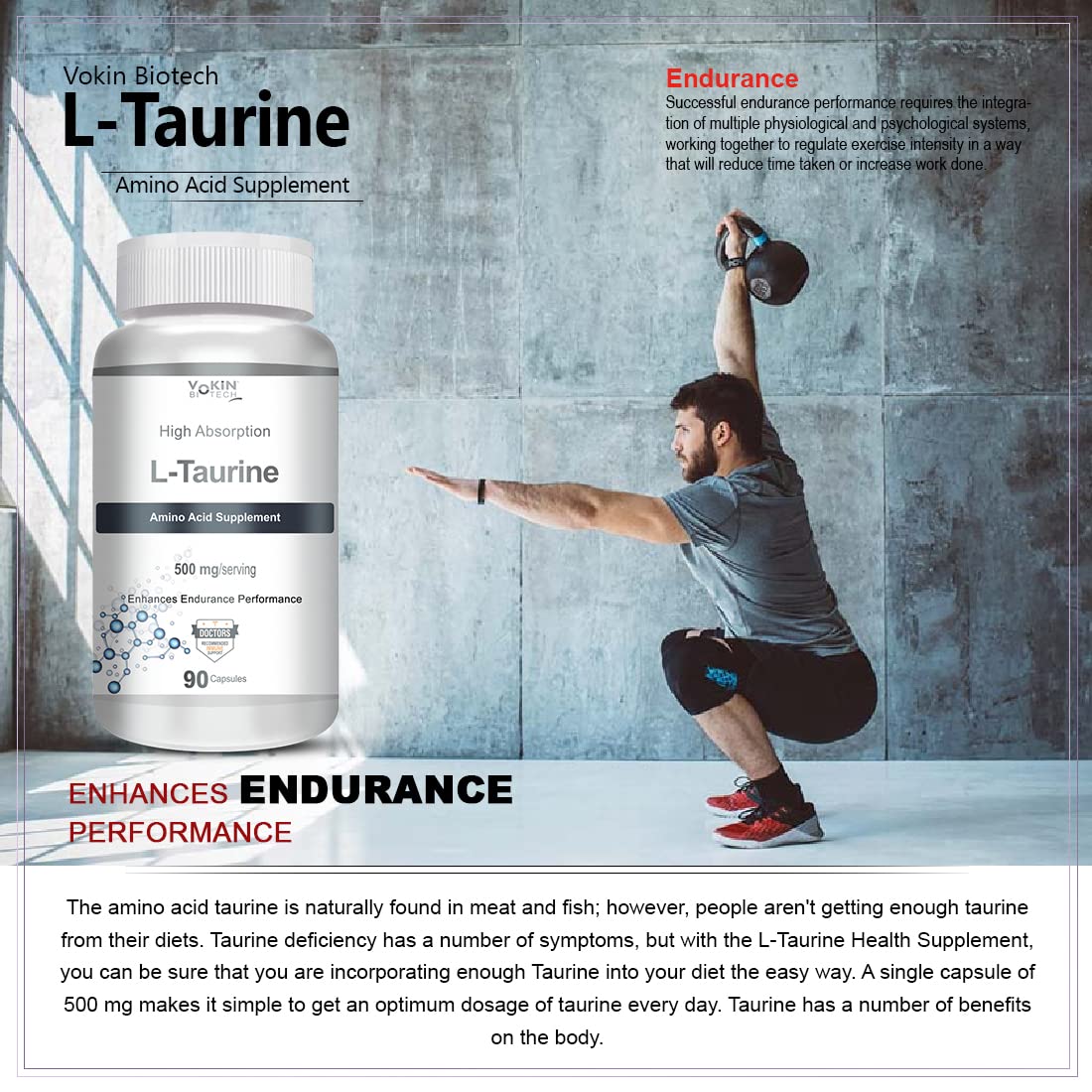 Vokin biotech L-Taurine - Amino Acid Supplement - 500mg (90 capsules)