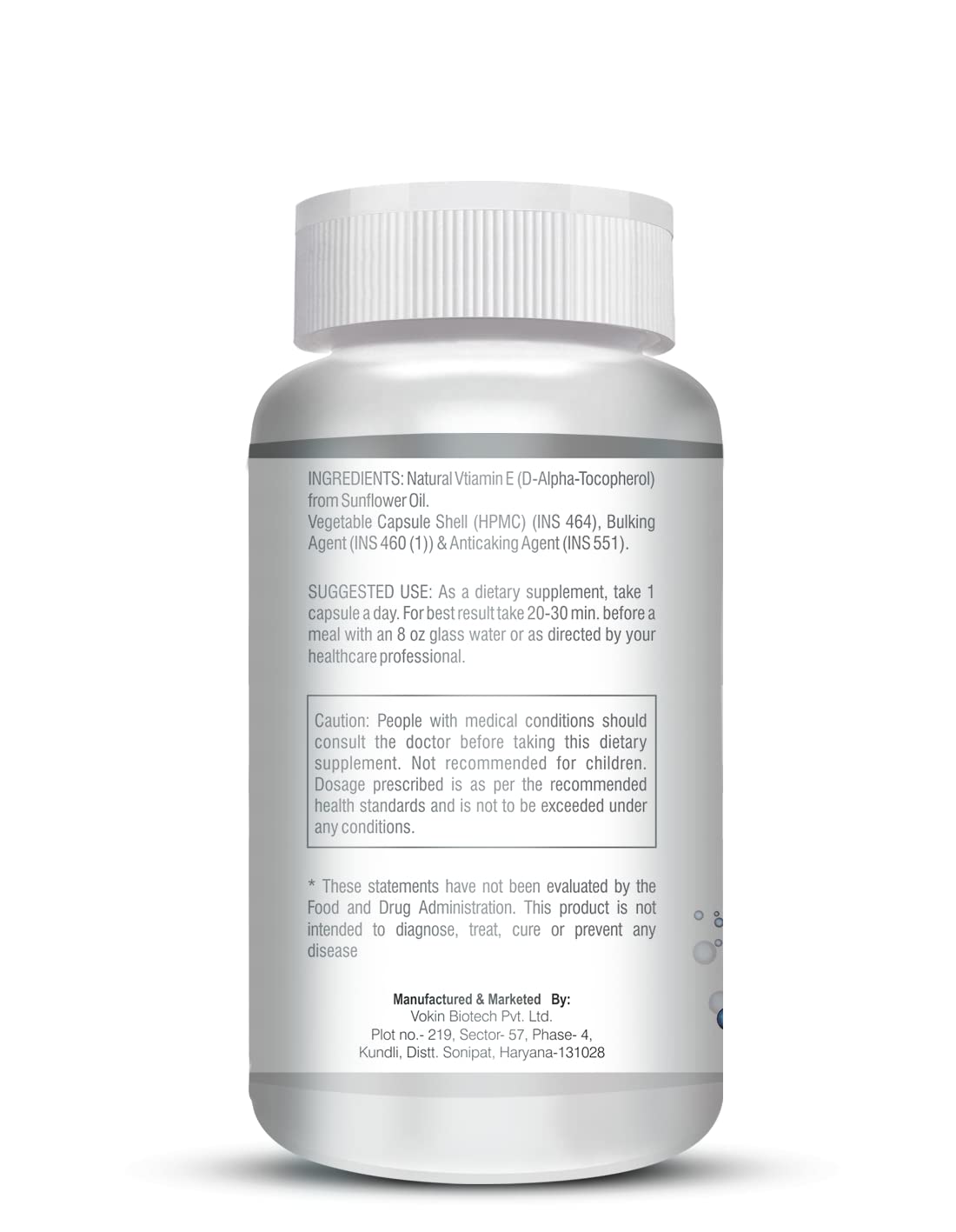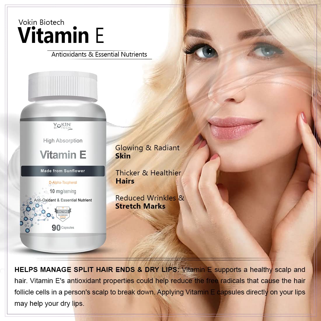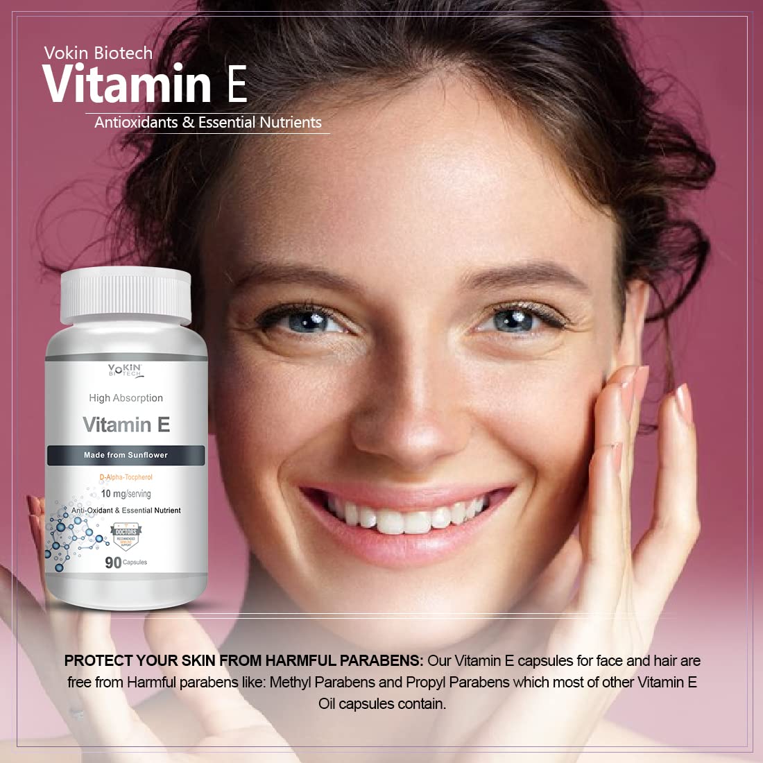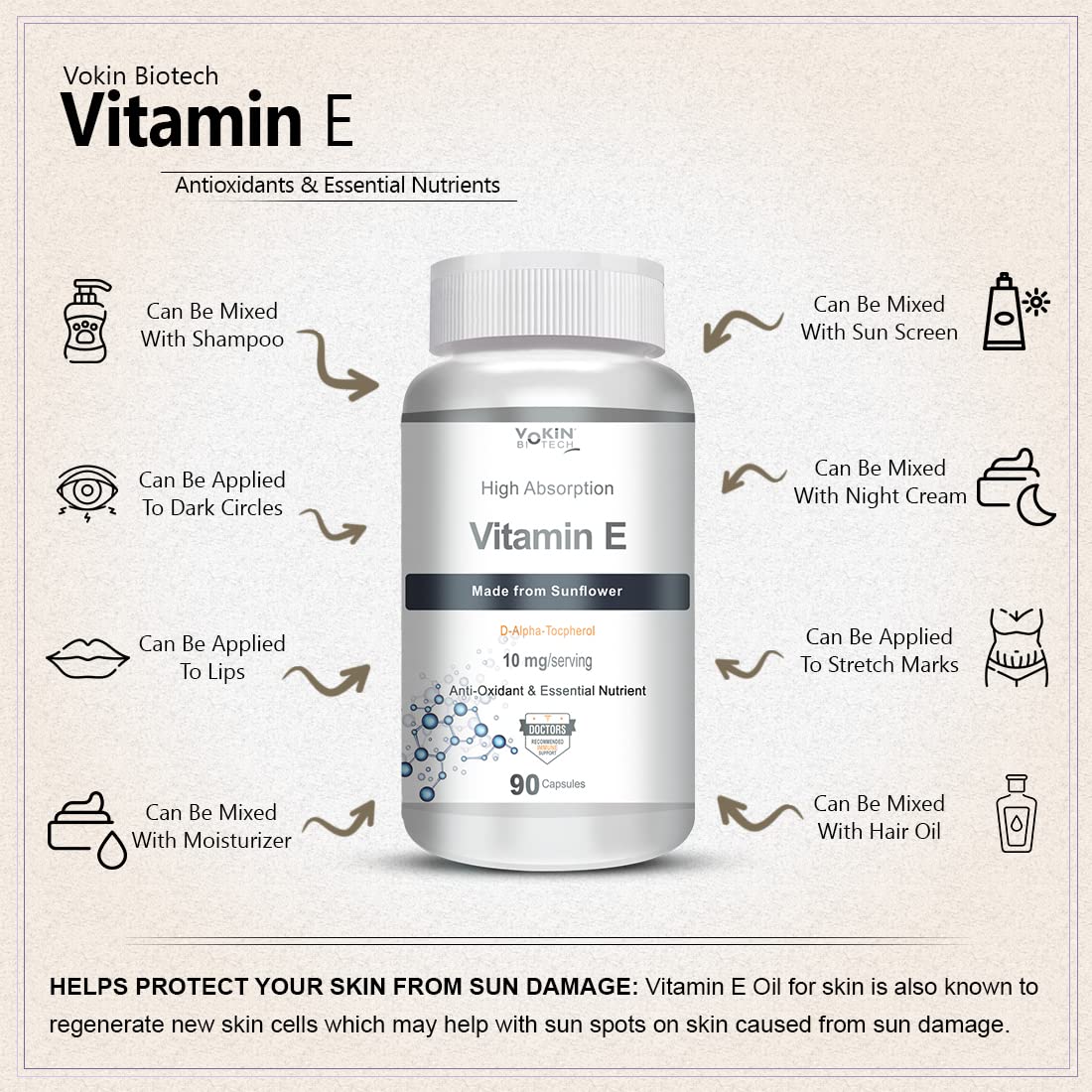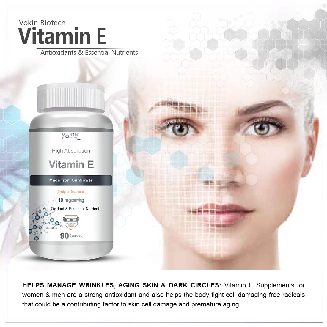 Vokin Biotech Natural Vitamin E from Sunflower - D-Alpha-Tocpherol - 10mg - 90 Capsules
