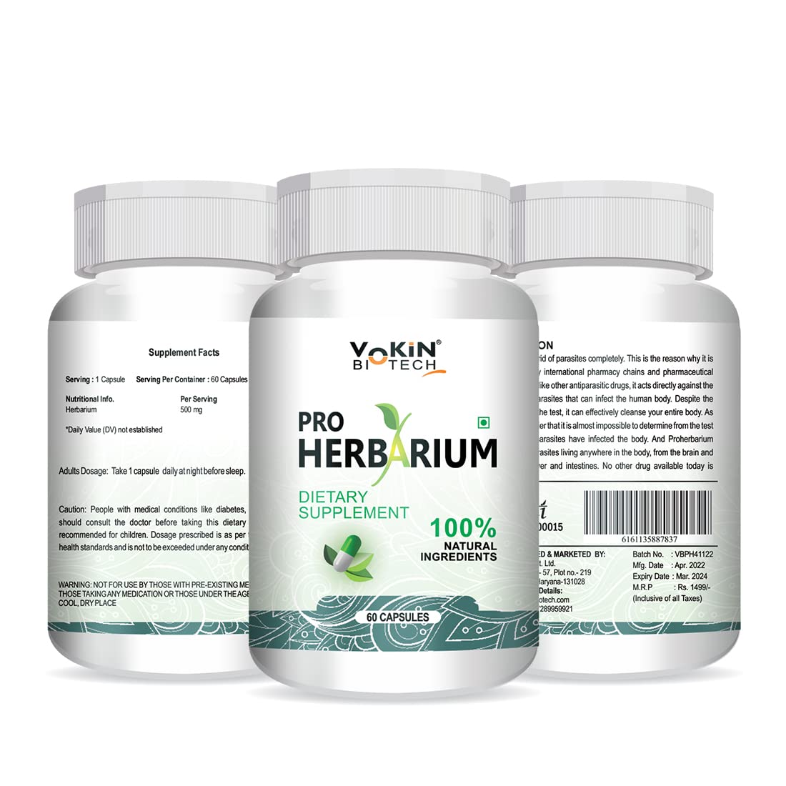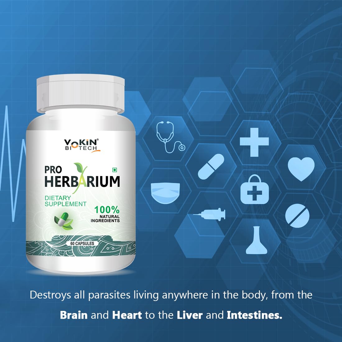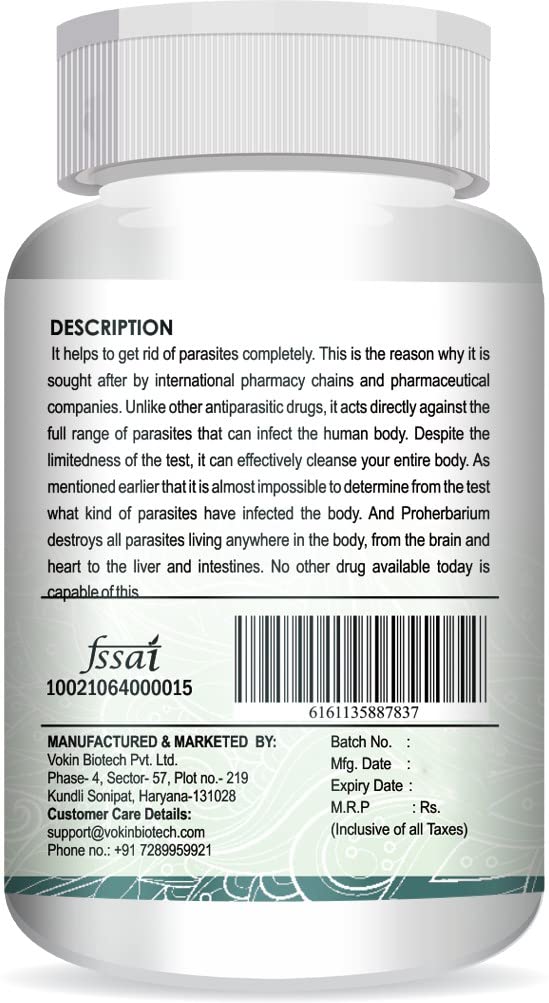 Vokin Biotech Pro Herbarium Protects Liver Heart Lungs Stomach & Skin from Parasites (60 Capsules)