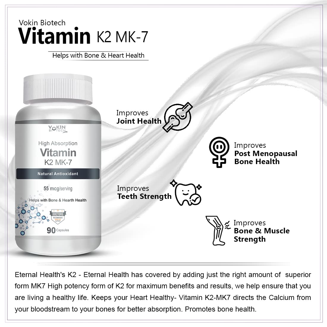 55 mcg of Vitamin K2 MK7 to help your body transport calcium more effectively.