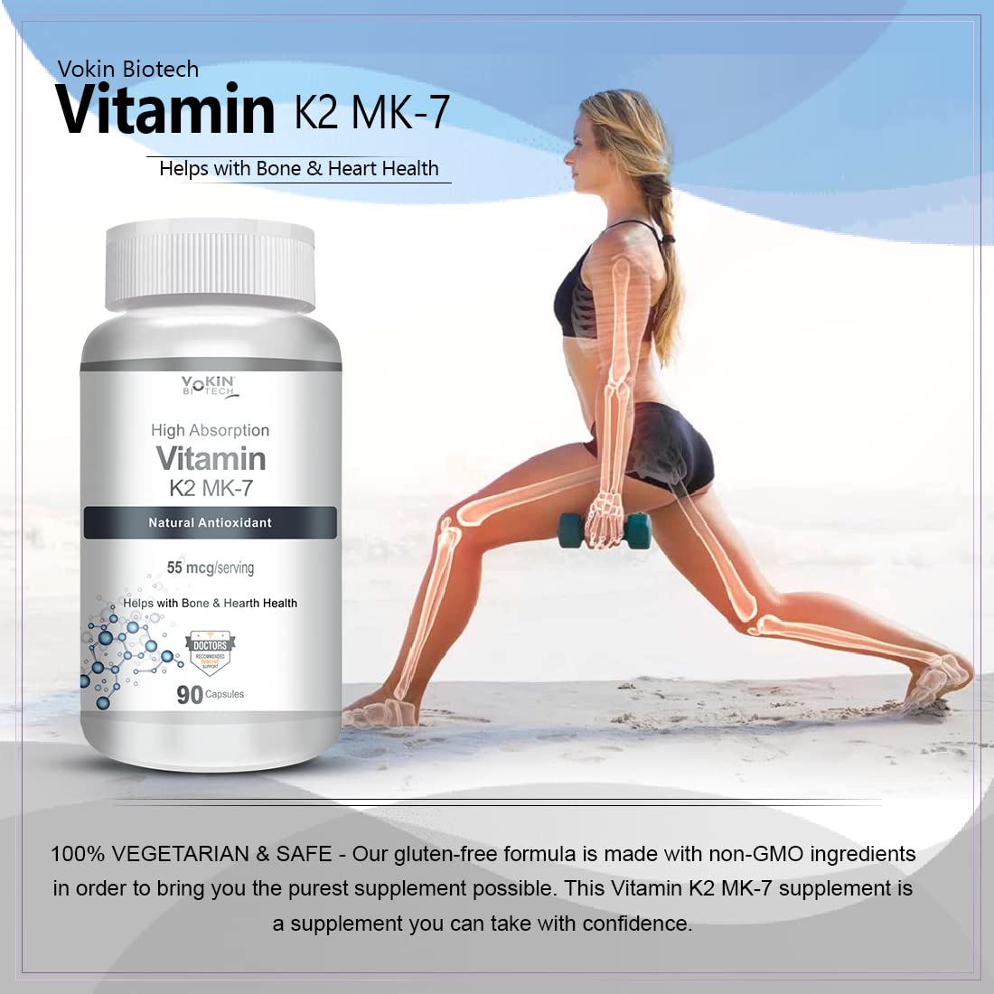Vokin Biotech Vitamin K2 MK-7- Support Bone & Heart Health - 55mcg (90 Capsules)