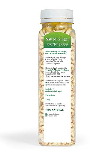 Vrunda's Salted Ginger / Adrak / Inji / Shunti / Allamu / Inchi for Cold Cough 120 Gm
