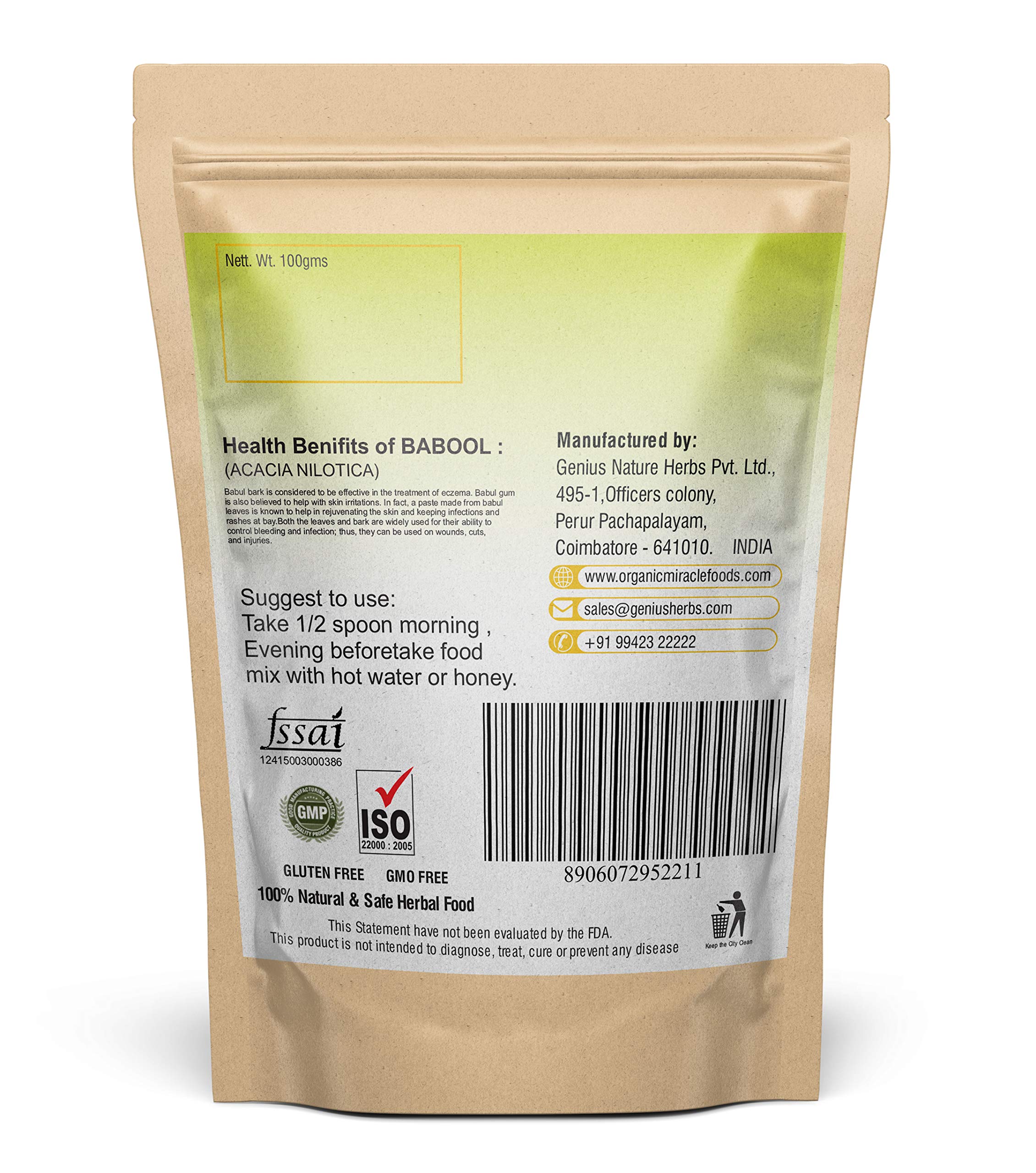 The Karuvelam pattai powder or the raw Babool powder made by Way4Organic is wrapped in such a way that it’s authenticity is secured in order to experience all of it’s natural benefits. Oral hygiene and every single dental issue can be aided comprehensively with the help of the Karuvelam pattai powder. This is one of the easily available trees in the Indian native and is intended to be used for its natural health benefits where all of the parts of the tree is full of curative values. Fully organic Karuvelam pattai powder from Way4Organic is entirely safe and guards the body from potential harm caused by viruses and fungi. These properties make it strikingly commendable especially for the maintenance of the oral health and hygiene. This powder is found to be a restorative supplement for the skin and hair and assist in preventing excessive hair fall. The major purpose of the Karuvelam pattai powder is to help in protecting the teeth and gums from various possible oral botherations. Features