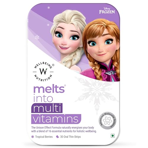 Wellbeing Nutrition Disney Melts Multivitamins for Kids | 100% RDA Vitamins A, B-Complex, C, D & Iron | Kids Growth & Development | Tropical Berry, 30 Oral Strips