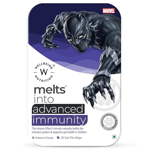 Wellbeing Nutrition Marvel Melts Advanced Immunity for Kids | Vitamin C, Zinc & Wellmune | Clinically Proven Immunity Support | Health Supplements for Kids | Valencia Orange Flavor, 30 Oral Strips