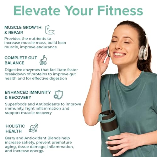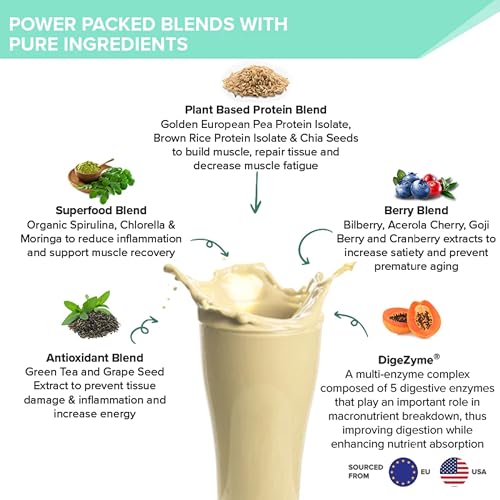 • SUPERIOR PROTEIN FOR MUSCLE GROWTH & REPAIR : With 22g of pure protein sourced from European Pea Protein Isolate Brown Rice Protein Isolate and Chia Seeds this plant protein is an excellent post-workout companion with a complete amino acid profile that ac