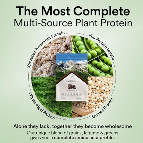Wellbeing Nutrition's Superfood Plant Protein is a premium quality all-in-one formulation with a blend of Golden European Pea Protein Isolate Brown Rice Protein IsolateChia Seeds Natural Superfoods & Digestive Enzymes. With ingredients sourced from CGMP-certified facilities from USA & Europe this vegan protein is also Gluten Free Sugar Free Dairy Free making it the perfect choice for anyone looking to increase their protein intake. It contains 22g Complete Plant Protein - an essential macronutrient that helps build muscle repair tissue and make enzymes and hormones ; 4g BCAA - essential amino acids that build muscle decrease muscle fatigue and alleviate muscle soreness ; and 3g Plant Fiber to ease digestion and provide complete gut health. The Superfood Blend of Organic Spirulina Chlorella and Moringa enhances immunity reduces inflammation and supports muscle recovery. Our Berry Blend consisting of Bilberry Acerola Cherry Goji Berry and Cranberry extracts increase satiety and prevent premature aging while also boosting immunity. The Antioxidant Blend with Polyphenols from Green Tea and phytoflavinoids from Grape Seed which help prevent tissue damage inflammation increase energy and support skin and hearth health while the Digestive Enzyme Blend extracted from Pineapples and Papayas consists of Protease Papain and Bromelain to facilitate faster breakdown of proteins to improve gut health and effective digestion. This alkalising antioxidant mineral vitamin and fiber rich blend of plant-based food ingredients along with digestive enzymes is ideal to help you kick start your day or consume post work out! The non-GMO all natural and preservative-free blend has no added sugar and supports overall health & wellness.