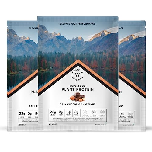 Wellbeing Nutrition Organic Vegan Plant Protein Isolate Powder | 22g Protein, 5g BCAA European Pea & Brown Rice Protein for Muscle Growth & Recovery | Dark Chocolate - 32gm (Pack of 3)