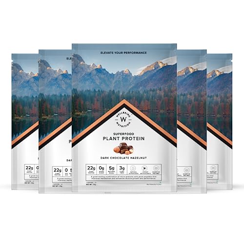 Wellbeing Nutrition Organic Vegan Plant Protein Isolate Powder | 22g Protein, 5g BCAA European Pea & Brown Rice Protein for Muscle Growth & Recovery | Dark Chocolate - 32gm (Pack of 5)