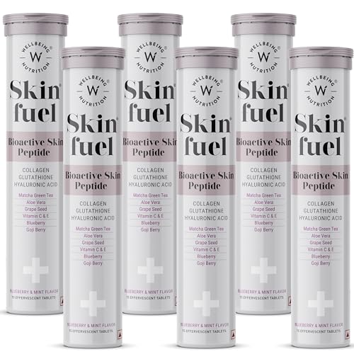 Wellbeing Nutrition Skin Fuel | Glutathione Tablets | Skin Glow and Radiance for Men & Women | Hyaluronic Acid, Grape Seed, Vitamin E (15 Effervescent Tablets) Pack of 6