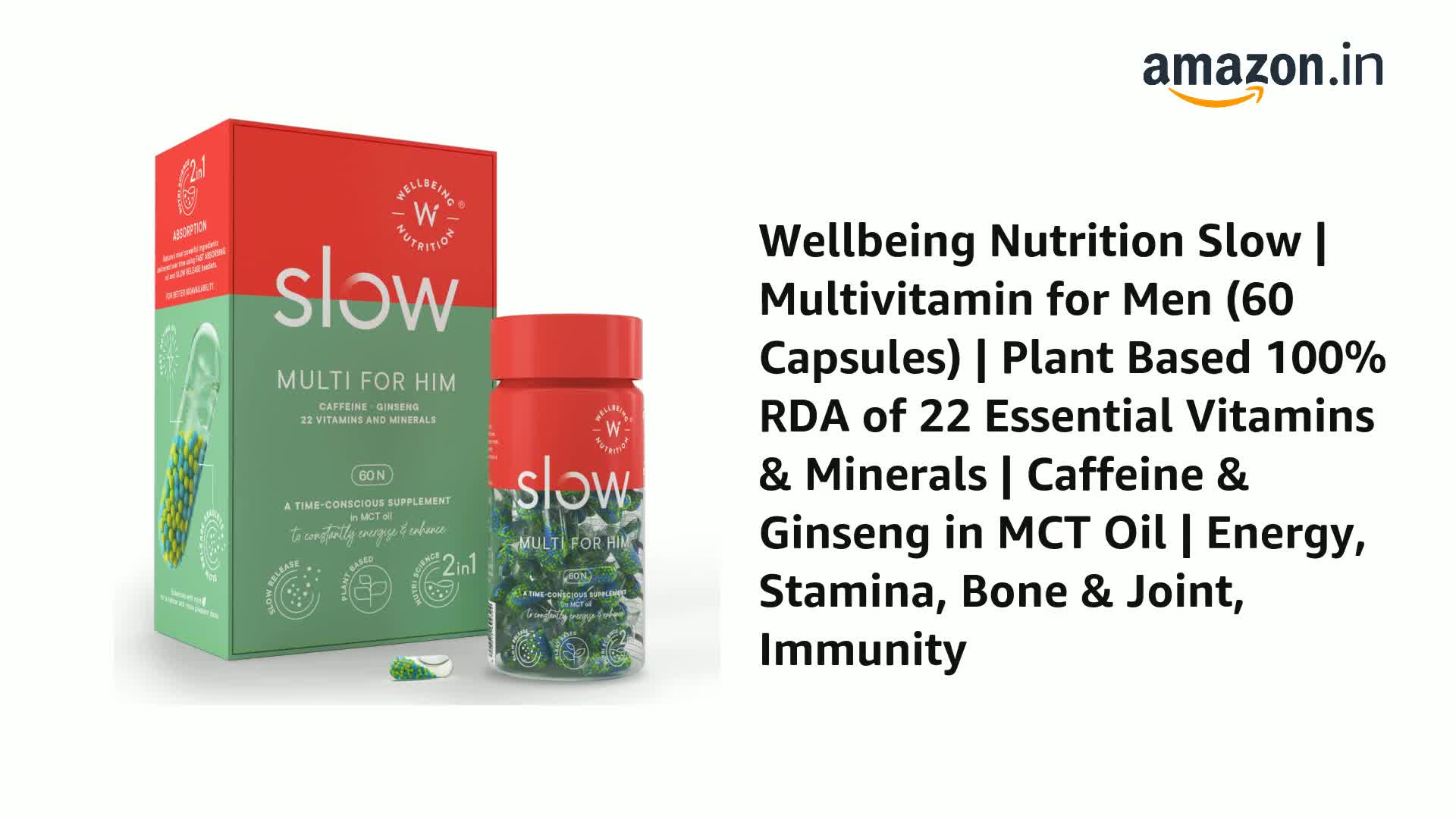 Scientifically formulated Multivitamin capsule for men with fast acting MCT oil for instant energy & plant based vitamins+minerals beadlets with clinically studied Natural Caffeine +Ginseng to enhance focus & reduce fatigue. A high-quality daily serving provides 100% RDA of vital nutrients like B-complex for normal growth metabolism & reproduction. CalciumVit.D & magnesium support bone health; PotassiumVit.B12 & selenium support muscle function. The trace minerals like IodineCopperZincChromium Molybdenum Manganese support brain health & cognition;Antioxidant complex of Vit.AC & E to support overall vitality & provide 360-degree solution to ensure your overall health