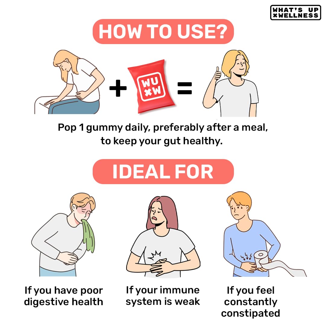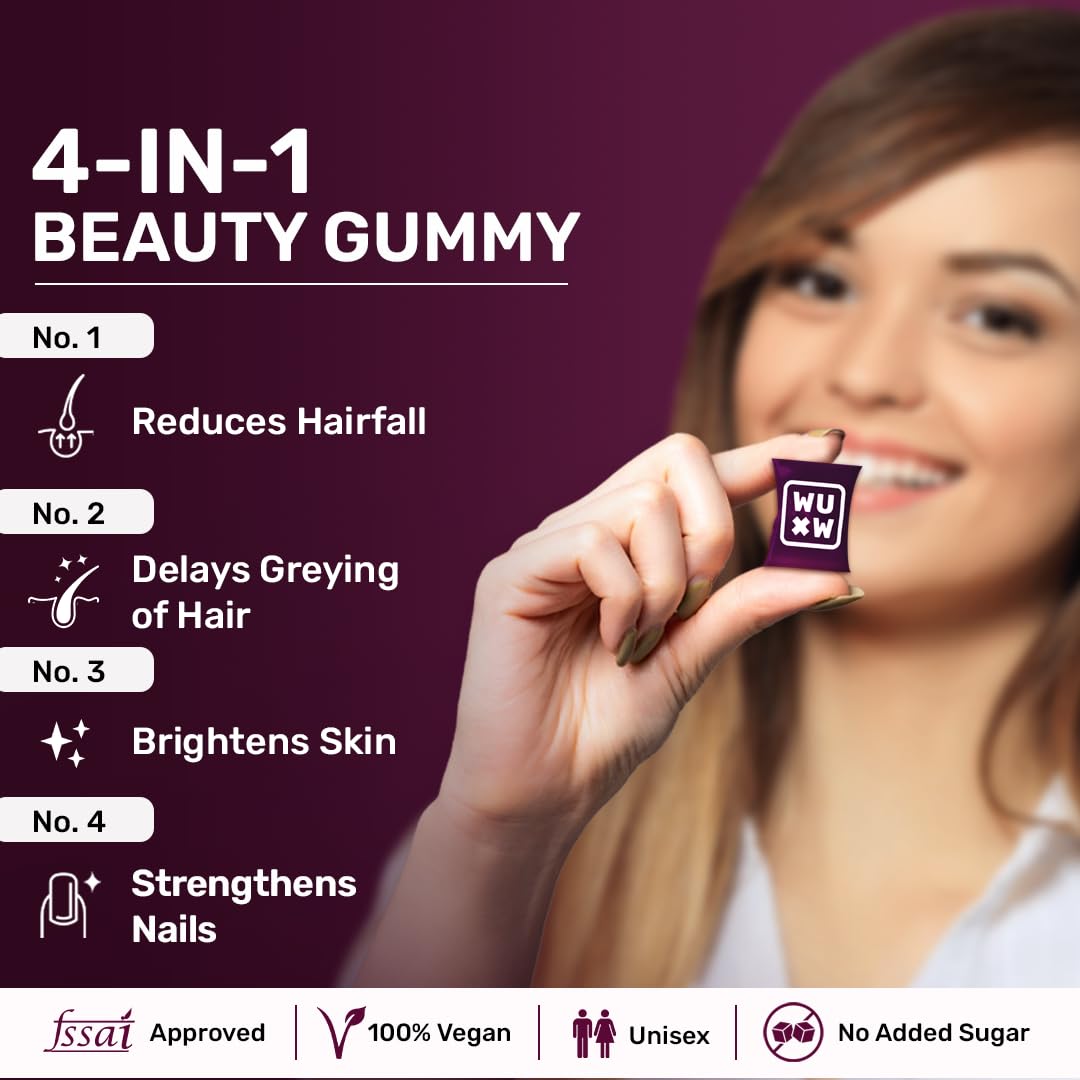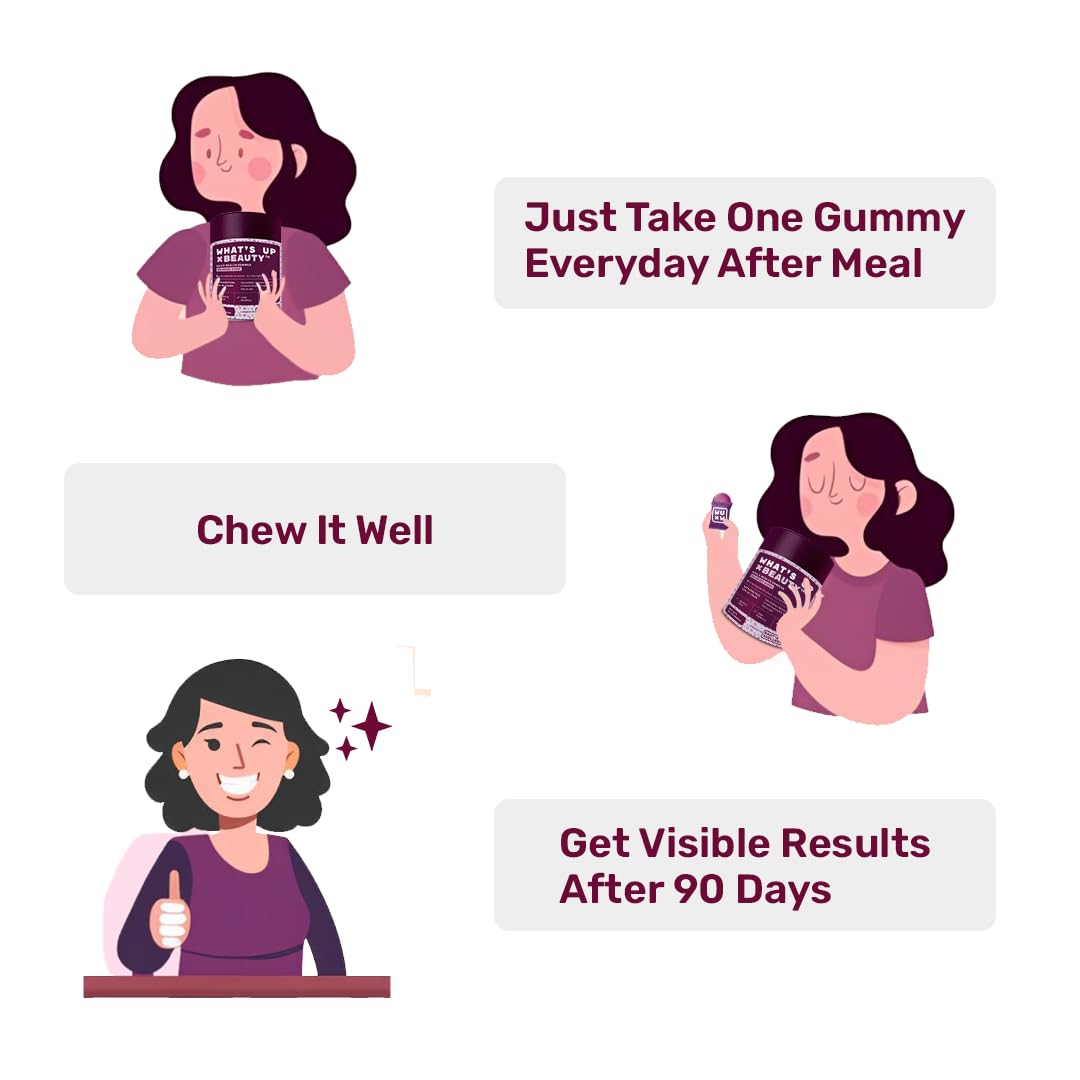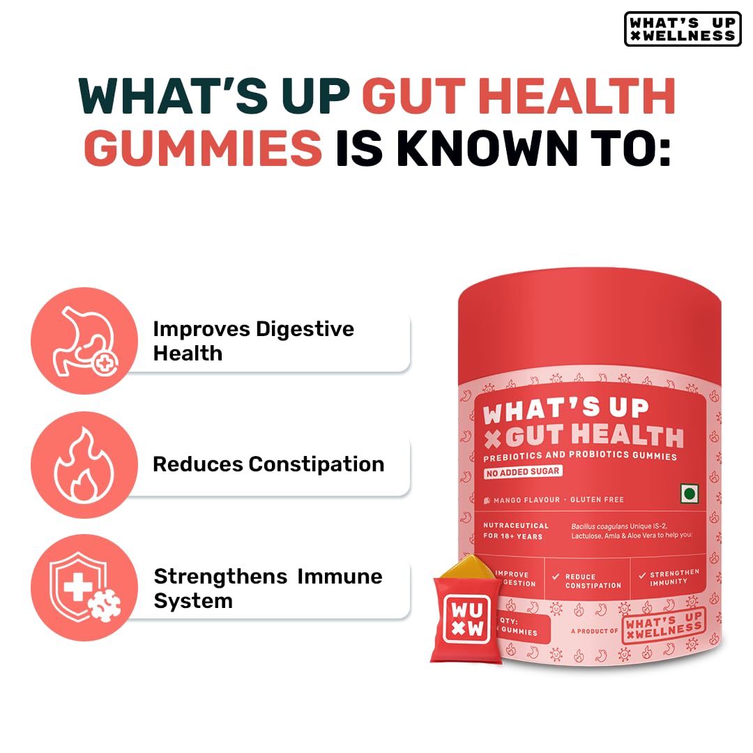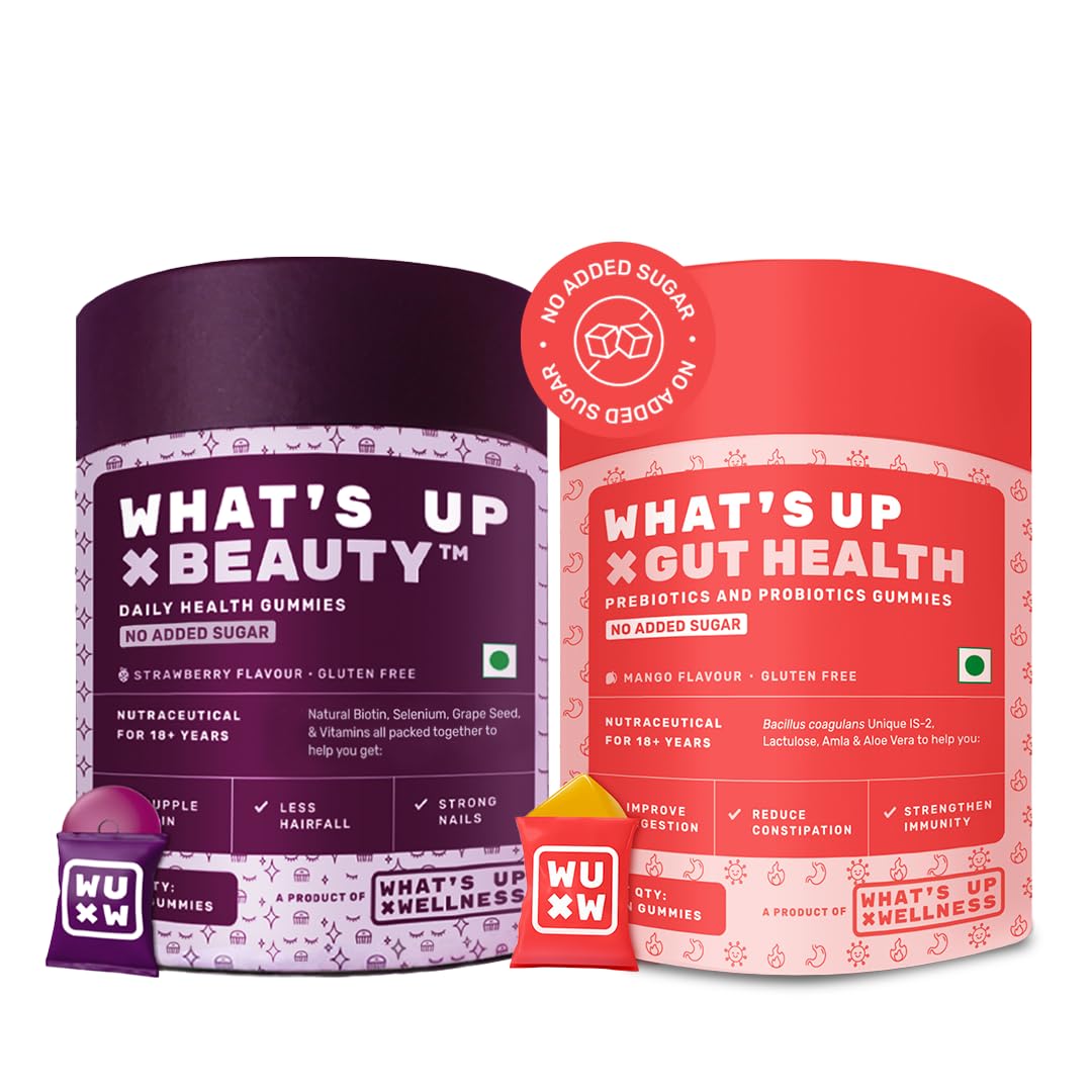 What's Up Wellness Beauty & Gut Health Combo | Natural Biotin for Strong Hair Vitamin A B6 and C for Bright Skin + Prebiotics & Probiotics Supplement for Digestion Constipation Relief & Immunity