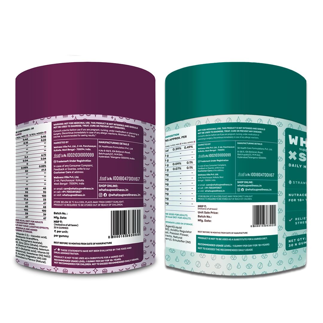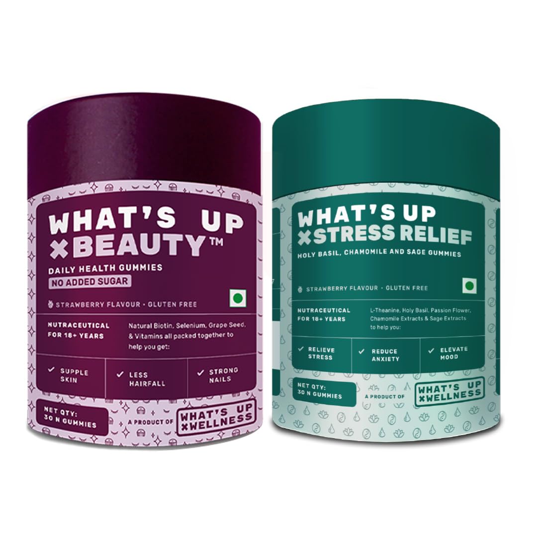 • What's Up Wellness Beauty No Added Sugar Gummies: It is a delicious blend of essential nutrients to keep your skin hydrated and maintain its youthful glow. Superfood Sea Buckthorn fights the daily pollution & prevents breakouts while Aloe Vera helps in so