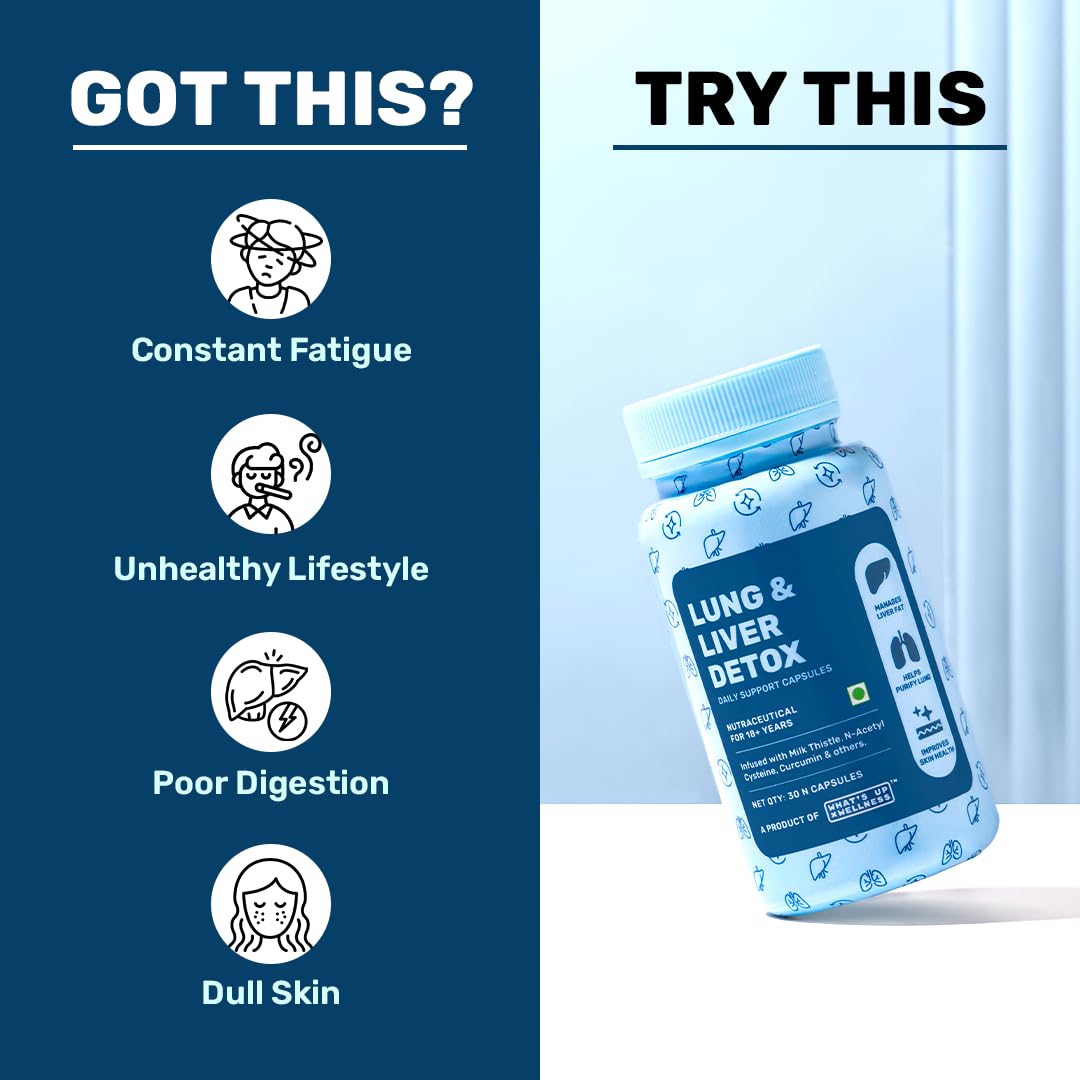 What's Up Wellness Lung & Liver Detox Supplement Capsules with Milk Thistle and N-Acetyl Cysteine For Fatty Liver 30 Capsules