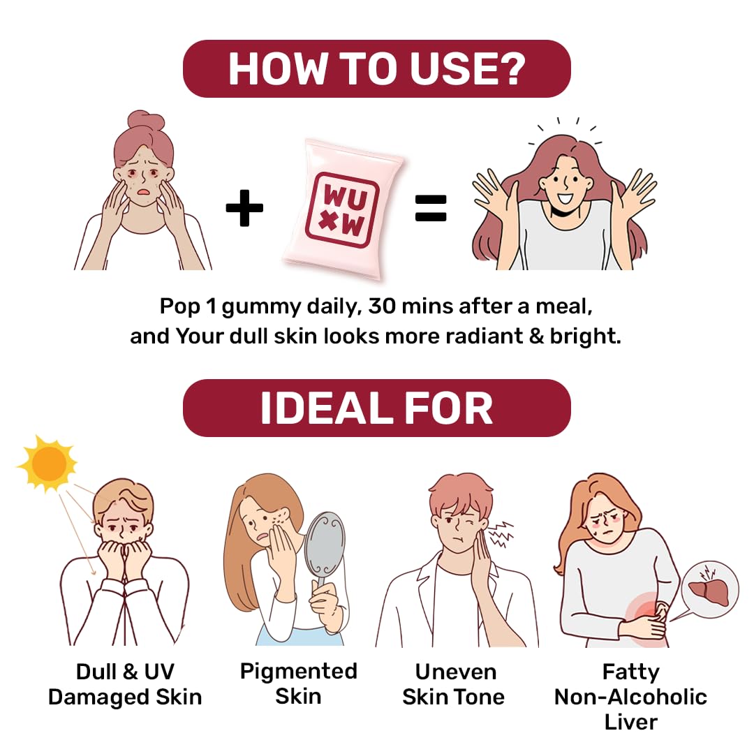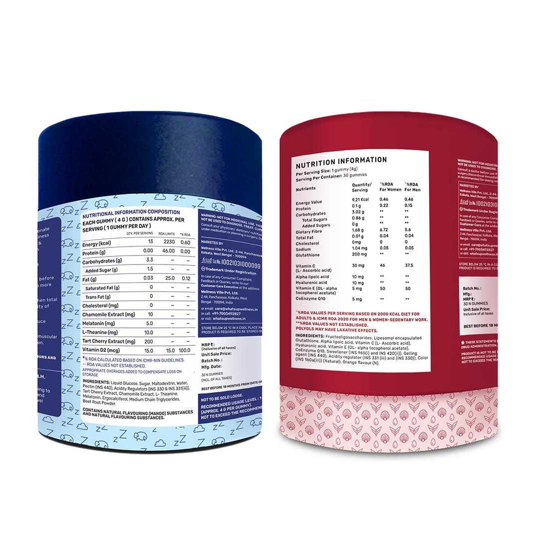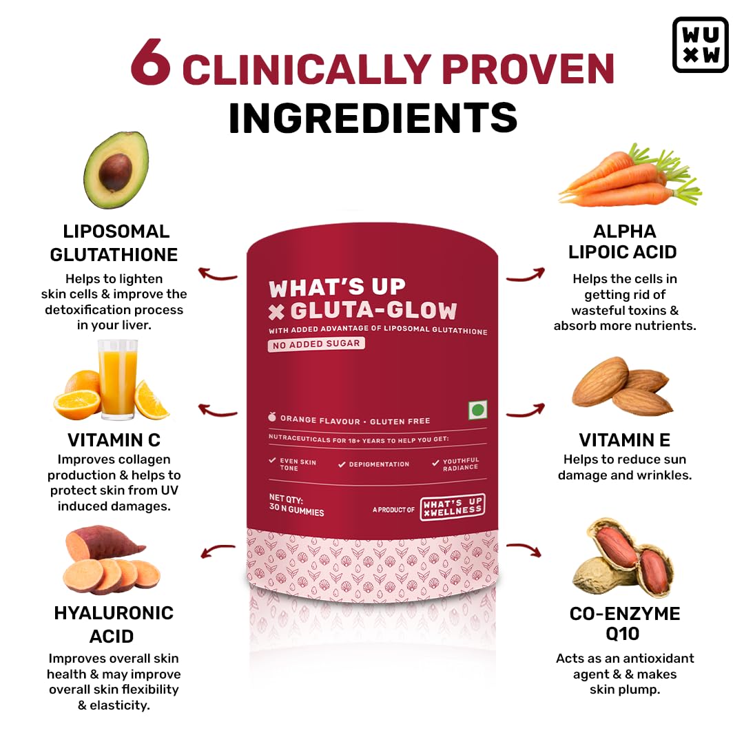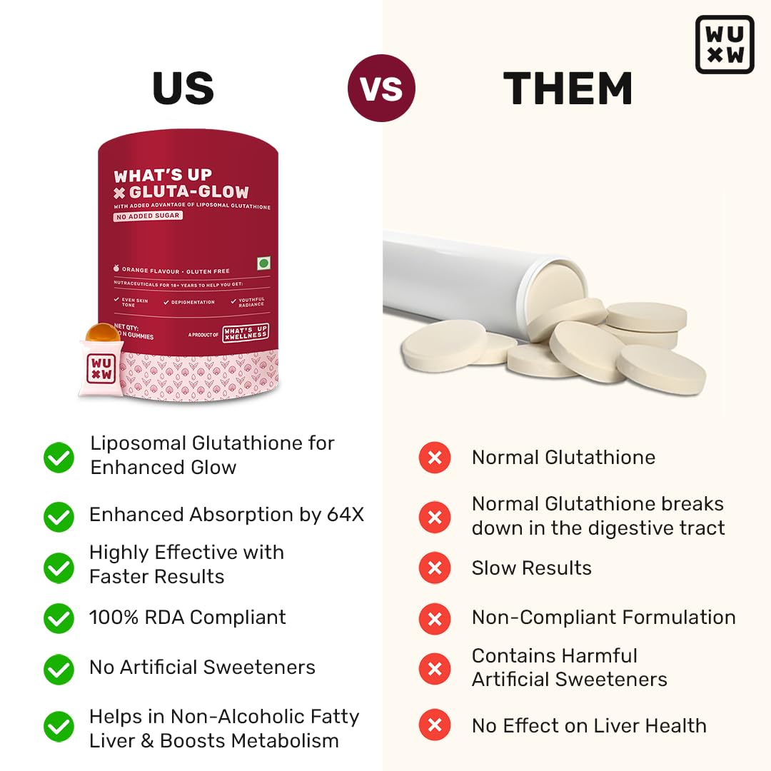 What's Up Sleep Gummies for adults deliver a unique blend of active ingredients that work together to calm your mind and promote restful sleep so you wake up feeling refreshed with relaxed muscles. Glutathione plays a crucial role in neutralizing free radicals and protecting your cells and skin from free radicals. By incorporating What's Up Gluta-Glow Gummies into your daily routine you can enhance the protection of your skin resulting in a radiant beautiful by reducing melanin content in your skin to boost your confidence