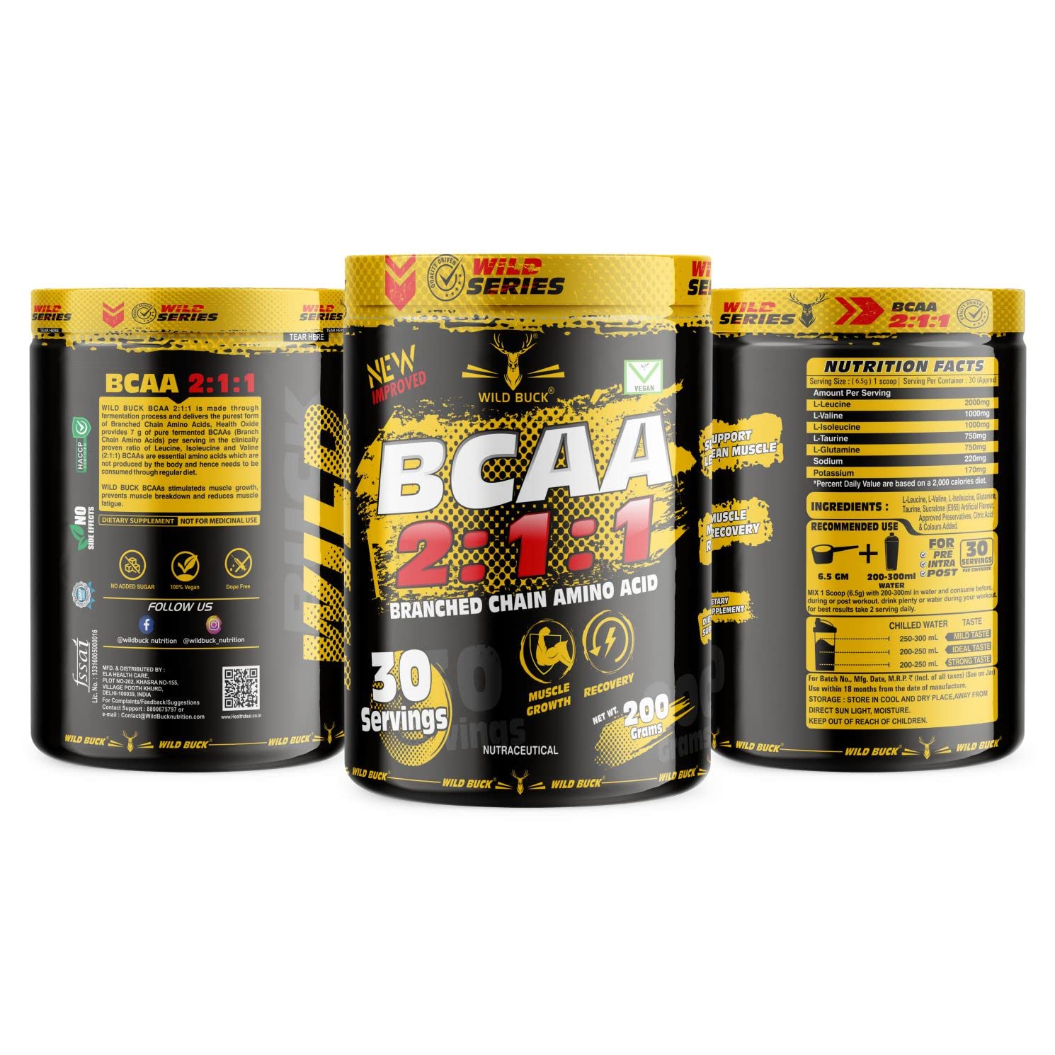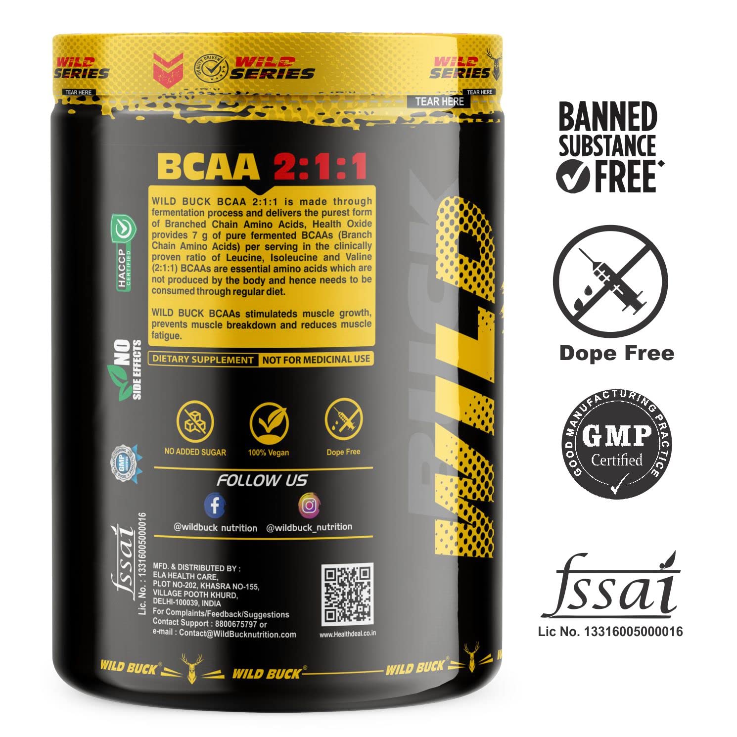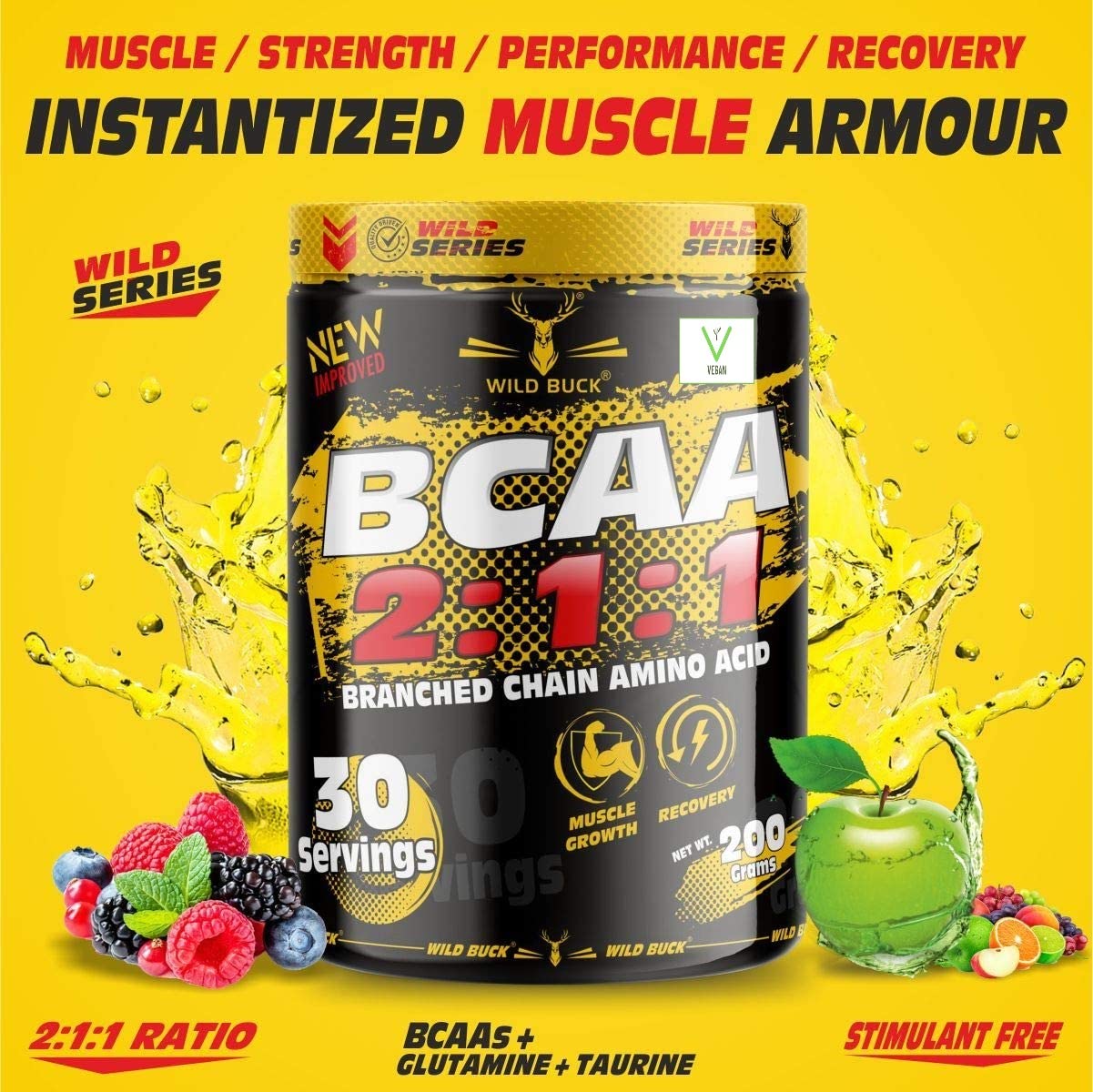 Wild Buck BCAA Supplement 2:1:1 Instantized BCAA Energy During Workout BCAA Supplement Pre & Post Workout Supplement | BCAA Powder | Amino Energy Supplement [30 Servings 200 g Wild Berries Flavor]