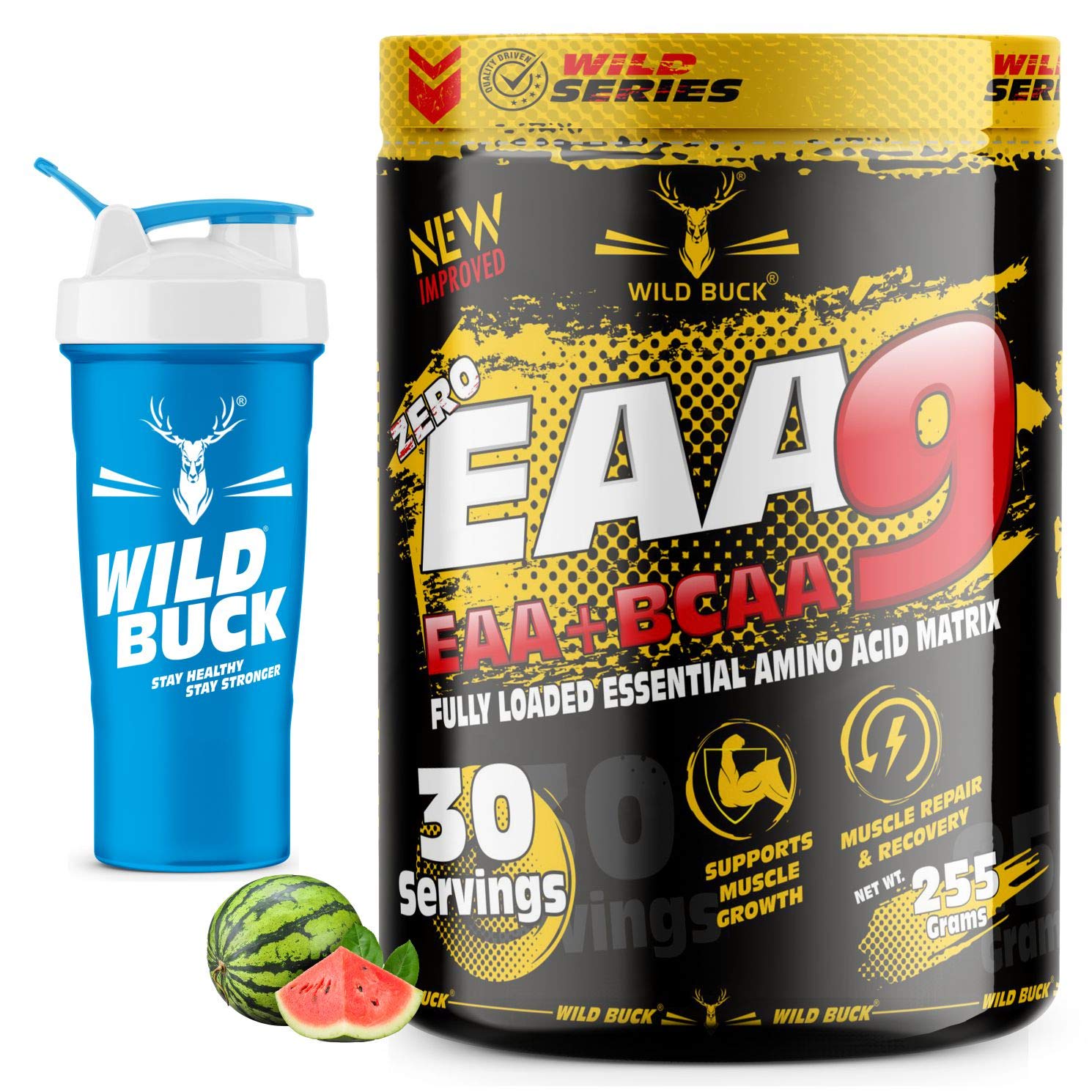 WILD BUCK EAAs-BCAA Energy Drink for Workout | Pre/Post Workout Supplement | Recovery | Muscle Protein Synthesis | EAAs-BCAA All 9 Essential Amino Acids [30 Watermelon Twist 255g] Free Shaker