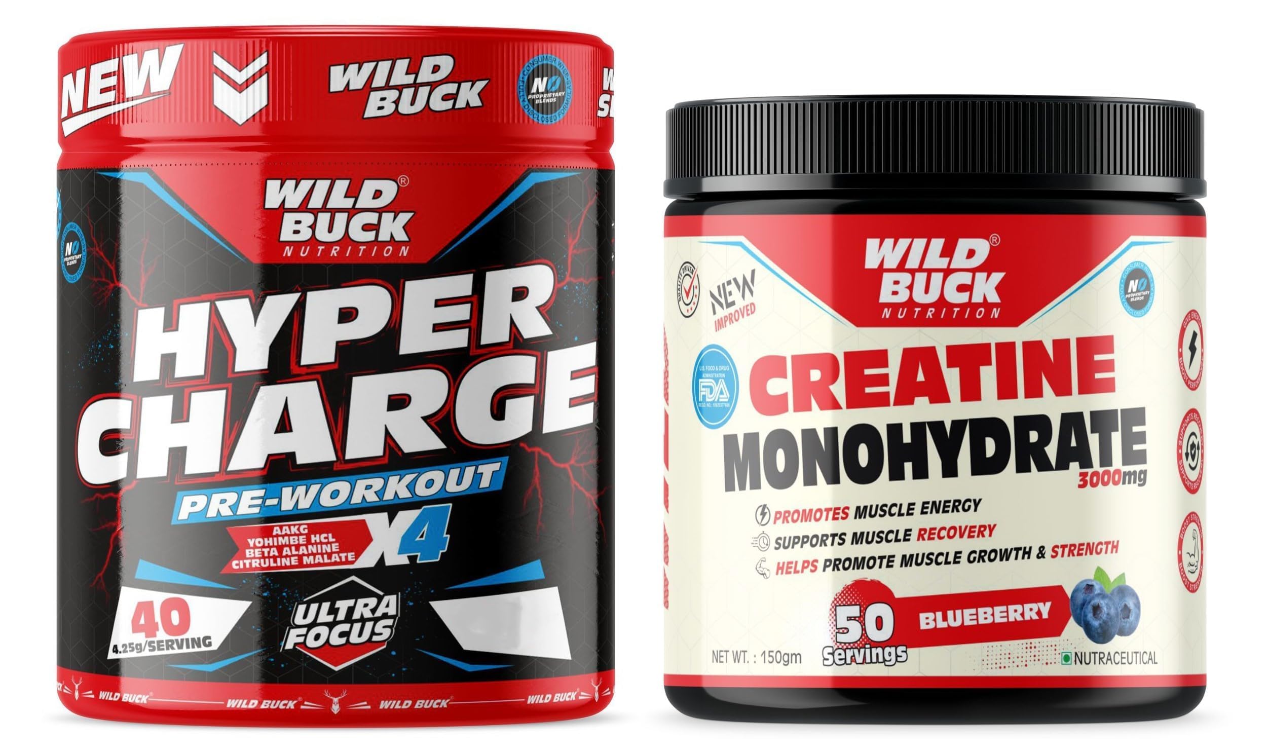 The WILD BUCK Hyper Charge X4 Pre-workout : Designed to elevate your energy focus power output and performance levels it will help you power through every training session and prime you for harder heavier and more productive lifts. With so many ingredients dedicated to powering up your results The WILD BUCK Pre-workout is in a league of its own. Stop leaving gains on the table. Start making the most of your workouts today with The WILD BUCK Pre-workout the lifting partner youâve been looking for. Serving: For Insane Workout - Take One Scoop with 150-200ml of water and drink 10-20 minutes before action. For Hardcore Workout - Take half Scoop with 150-200ml of water and drink 10-20 minutes before action. Creatine has become one of the most popular sports supplements among professional and amateur athletes. In the body creatine is converted to creatine phosphate which helps to fuel skeletal muscles and provides support for immediate energy products during high-intensity workouts. Creatine may very well be the single most heavily researched sports supplement available today. Creatine is a key nutrient that occurs naturally in the body and found in some foods. Creatine functions as an energy source in your muscle cells helping to increase strength and reduce fatigue during intense training.