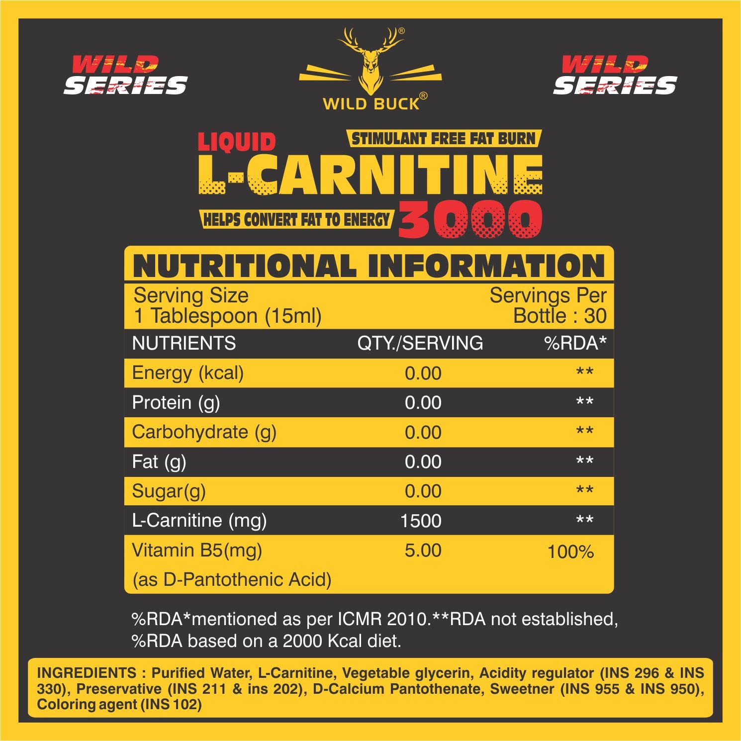 L-carnitine assists in the breakdown of energy stores in cells and plays an essential role in making fat available for muscle tissue - promoting muscular energy. L-carnitine helps transport long-chain fatty acids providing energy and also helps maintain a healthy environment for lean muscle growth which leads to a strong lean and defined physique. L-carnitine is a non-stimulant fat burner that can be combined as a part of your supplement stack. Wild Buck L-Carnitine helps you burn fat so you can finally get the body you've been working so hard for. It does this by signaling your body to tap into your fat stores for energy. This means more energy and huge fat loss.