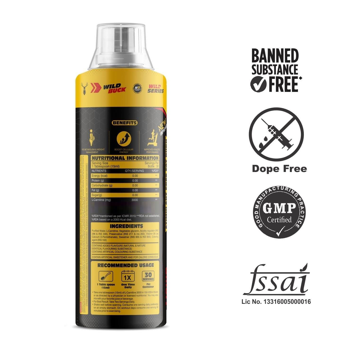 WILD BUCK L-Carnitine Liquid 3000 mg - Pump Matrix Workout Drink for Performance and Muscle Recovery Helps Convert Fat into Energy | Energy & Endurance | Performance & Recovery | Build Lean Muscle | Muscle Fullness and Hardness | Pre & Post Workout Supple