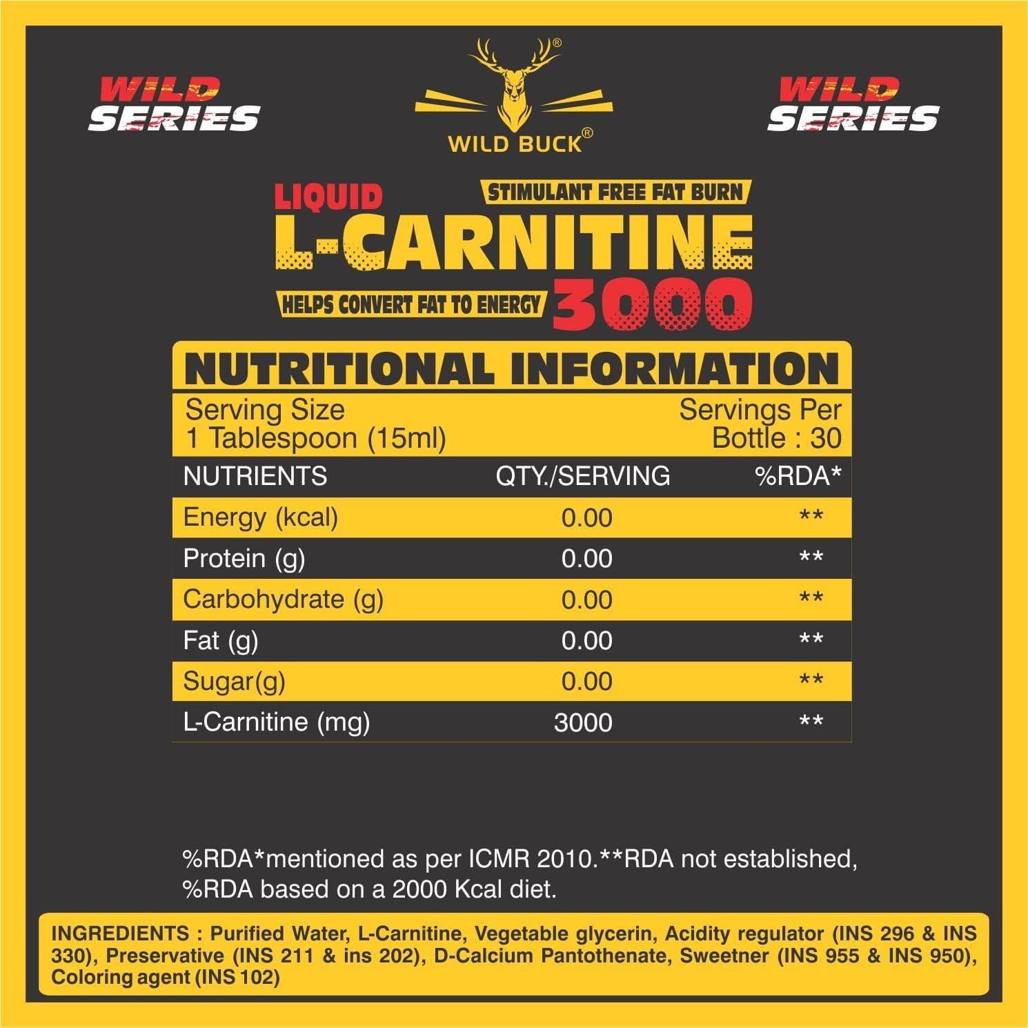 • Zero Sugar. Zero Carbs. Zero Calories. Wild Buck L-Carnitine provides consumers with a great tasting sugar free calorie free and convenient way of supplementing with L-Carnitine.