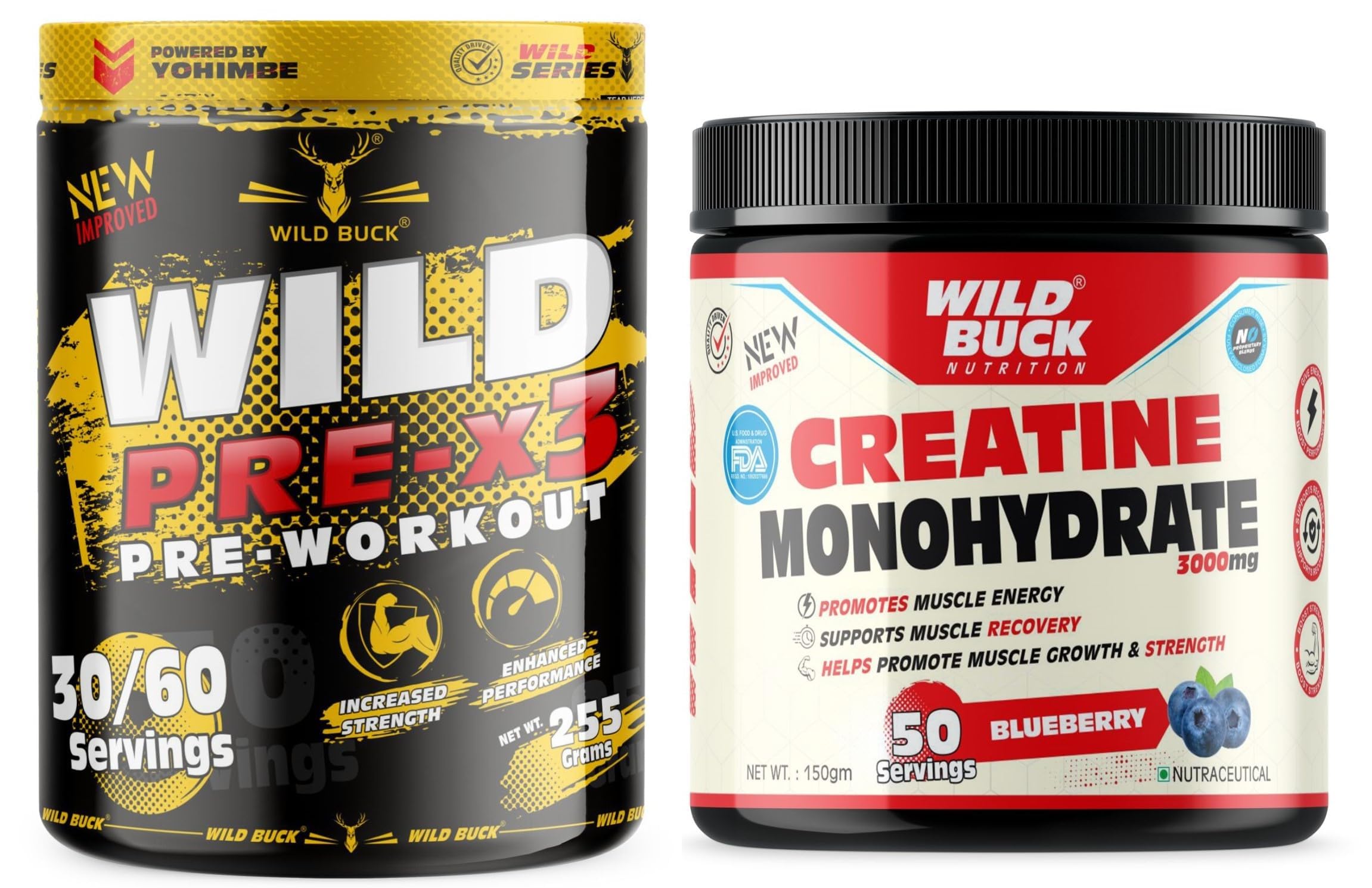 The WILD BUCK Pre-workout : Designed to elevate your energy focus power output and performance levels it will help you power through every training session and prime you for harder heavier and more productive lifts. With so many ingredients dedicated to powering up your results The WILD BUCK Pre-workout is in a league of its own. Stop leaving gains on the table. Start making the most of your workouts today with The WILD BUCK Pre-workout the lifting partner youâve been looking for. Serving: For Insane Workout - Take One Scoop with 150-200ml of water and drink 10-20 minutes before action. For Hardcore Workout - Take half Scoop with 150-200ml of water and drink 10-20 minutes before action. Creatine has become one of the most popular sports supplements among professional and amateur athletes. In the body creatine is converted to creatine phosphate which helps to fuel skeletal muscles and provides support for immediate energy products during high-intensity workouts. Creatine may very well be the single most heavily researched sports supplement available today. Creatine is a key nutrient that occurs naturally in the body and found in some foods. Creatine functions as an energy source in your muscle cells helping to increase strength and reduce fatigue during intense training.