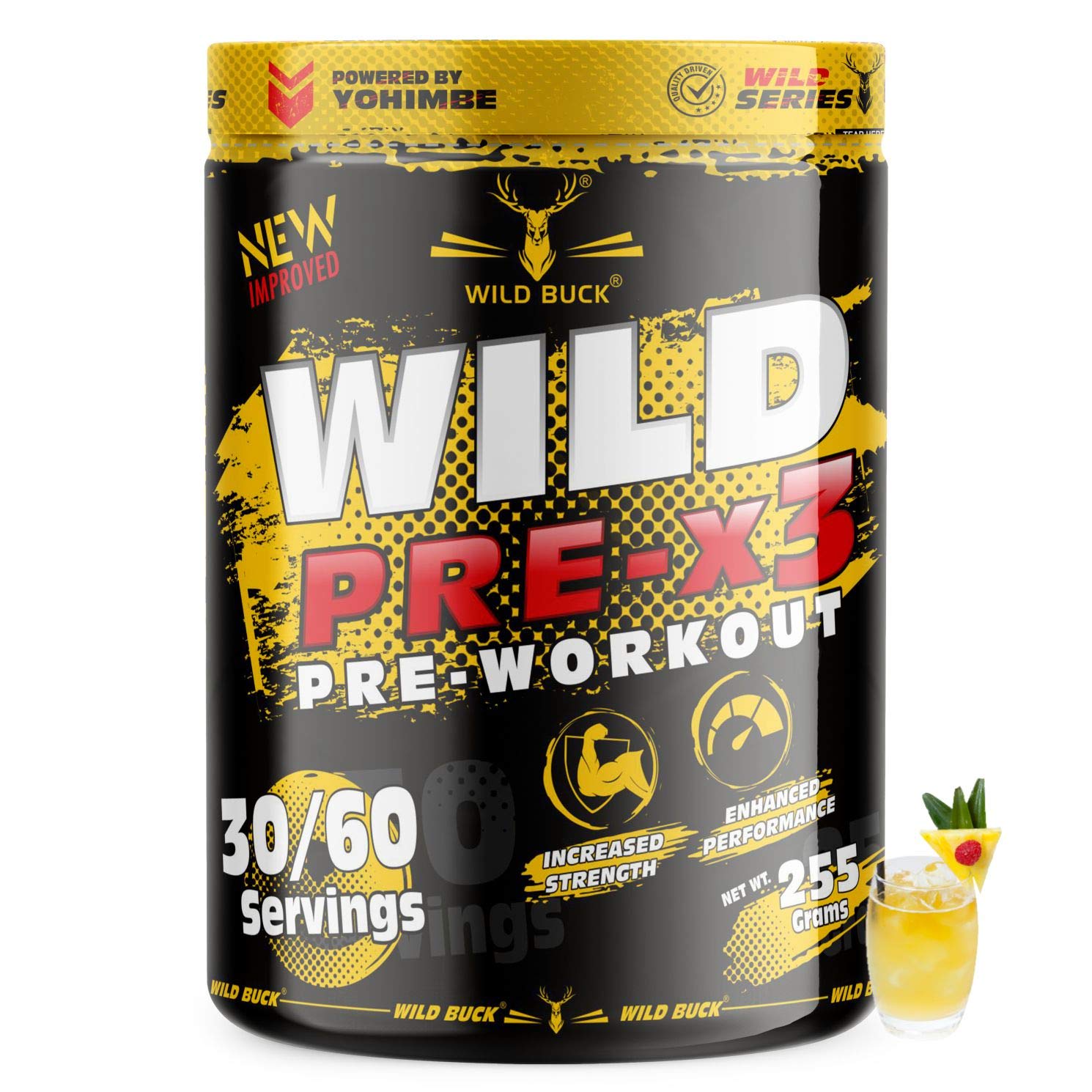 The WILD BUCK Pre-workout : Designed to elevate your energy focus power output and performance levels it will help you power through every training session and prime you for harder heavier and more productive lifts. With so many ingredients dedicated to powering up your results The WILD BUCK Pre-workout is in a league of its own. Stop leaving gains on the table. Start making the most of your workouts today with The WILD BUCK Pre-workout the lifting partner youâve been looking for. Serving: For Insane Workout - Take One Scoop with 150-200ml of water and drink 10-20 minutes before action. For Hardcore Workout - Take half Scoop with 150-200ml of water and drink 10-20 minutes before action.
