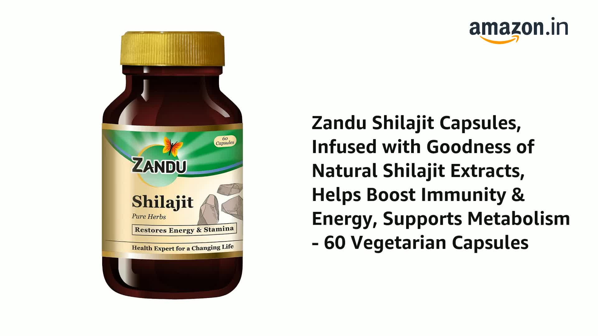 Zandu Shilajit Capsules Infused with Goodness of Natural Shilajit Extracts Helps Boost Immunity & Energy Supports Metabolism - 60 Vegetarian Capsules
