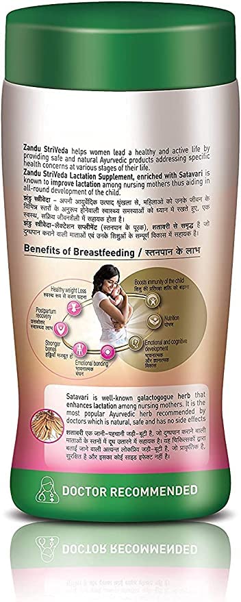 Breast milk is undeniably a baby's best form or nutrition. WHO recommends that infants should be exclusively breastfed for the first six months of life to achieve optimal growth development and health. However as a new mom the milk supply can be jeopardized owing to stress sleep deprivation lack of dietary nutrients or medical reasons. Adequate supplement intake combined with a well-balanced diet regime can aid in improving the breast milk production. With over 100 years of Trust Zandu StriVeda Satavari Lactation Supplement is enriched with Satavari - a well known galactogogue herb that enhances helps increase the breast milk among breast feeding mothers thus aiding in all-round development of the child. It is the most popular Ayurvedic herb recommened by doctors which is natural safe and has no side effects. If you're trying to increase your breast milk supply so that you can reduce or eliminate your dependence on formula food or you just need a bit more breast milk than you're currently providing Zandu Satavari can help !!!