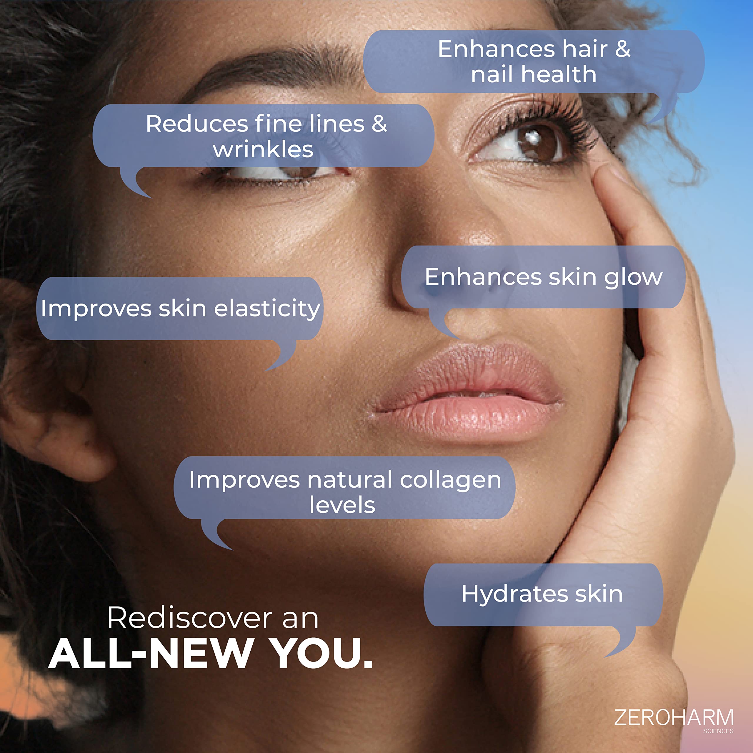 BIOTIN 30 MCG: ZeroHarm Nano Biotin comes with the goodness of Sesbania Grandiflora extract. Biotin a Vitamin B7 dietary supplement helps enhance the health of your hair skin and nails.â¯These plant-based tablets help improve hair growth thickness and volume. It stimulates keratin production to strengthen hair and reduce hair fall. Our patent-pending formulation process and nanotechnology ensure 100% Bioavailability and 90 times higher efficacy even with a much lower dosage. Collagen Builder: Zeroharm Collagen Builder is a precision nutraceutical that combines the power of Sea buckthorn extract Acerola extract Panax Ginseng root extract Bamboo shoot extract Pomegranate extract and Soya extract to help restore natural collagen levels reduce fine lines and wrinkles enhance skin glow improve skin elasticity hydrate skin enhance hair and nail health. Our patent-pending formulation process and nanotechnology ensure precision care with 90 times higher efficacy even with a much lower dosage.